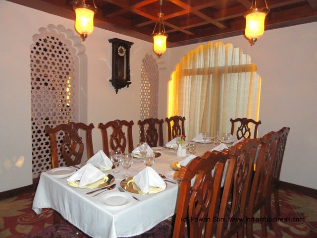 Rose ice-cream (Rs 150) with dry fruits and real rose petals, and Fried Ice-cream (Rs 175) was a great way to end our rich meal. Service was attentive. Servers hovered just far enough for you to enjoy your privacy but close enough to whisk away any finished dishes or replenish drinks.