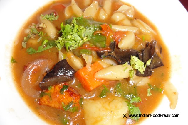Other specialties that we tried were Aloo Phing (100; Potatoes cooked with rice noodles), Shapta (180; Spicy Chicken, probably Tibet’s answer to Chilly Chicken), Sha-Shingbee (220; Mutton with green beans) and Veg Rhe-Chotse (120; momos in soup cooked with sliced veggies) of which each dish was better than the other. Last year on my visit to Ladhakh we had tried Veg Skyu (260; thumb pressed pasta) at a hotel, but the one at Tibetan Kitchen was far superior. Cooked with lightly fried paneer, black mushrooms, skyu, potatoes and other veggies made it nutritious at the same time appealing to the taste buds.