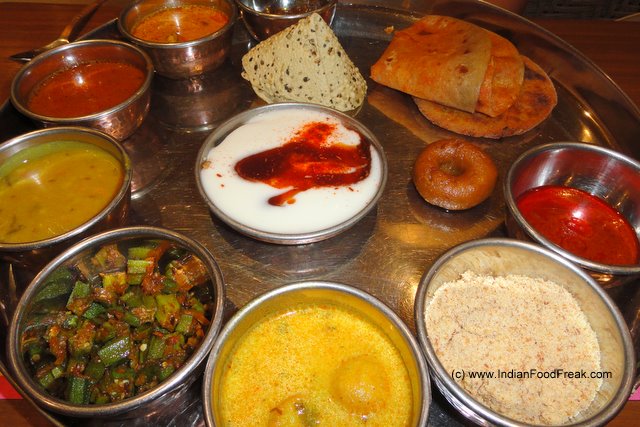 The Aapno Rajasthan theme is conveyed through its décor done tastefully through the wall hangings, sceneries, glasses, jugs, server dresses, and the charpoy style chairs. The feel is further accentuated by the server attire and the live folk music in the background. In such a traditional setting, we just didn’t feel like ordering anything from the Punjabi menu and settled for a Rajasthani Thaali (Rs 289), Jaipuri Mewa Pulao (195), Undhiyu ki sabji served with four Thepla (195), and Santre ki Kheer (95). Fortunately we were in time. Shortly we could see all seats of this 100-seater restaurant getting occupied in spite of the fast turnaround time which is a norm in such places. Though I found the general ambience to be good, but at times restaurant was much noisier as seats were closely placed.