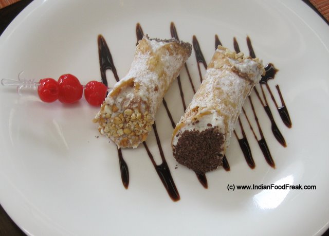 It is now time for the dessert. The chef recommends a traditional favourite — cannoli alla siciliana con ricotta mascarpone e scaglie di cioccolato (pastry filled with ricotta, mascarpone, and chocolate bits, Rs 225). He asks me to abandon my fork and use my fingers to pick up the tube shaped pastry and bite into the yummy goodness. As the fresh ricotta laced with honey and speckled with chocolate bits oozes into the mouth, the feeling of bien-etre settles in.