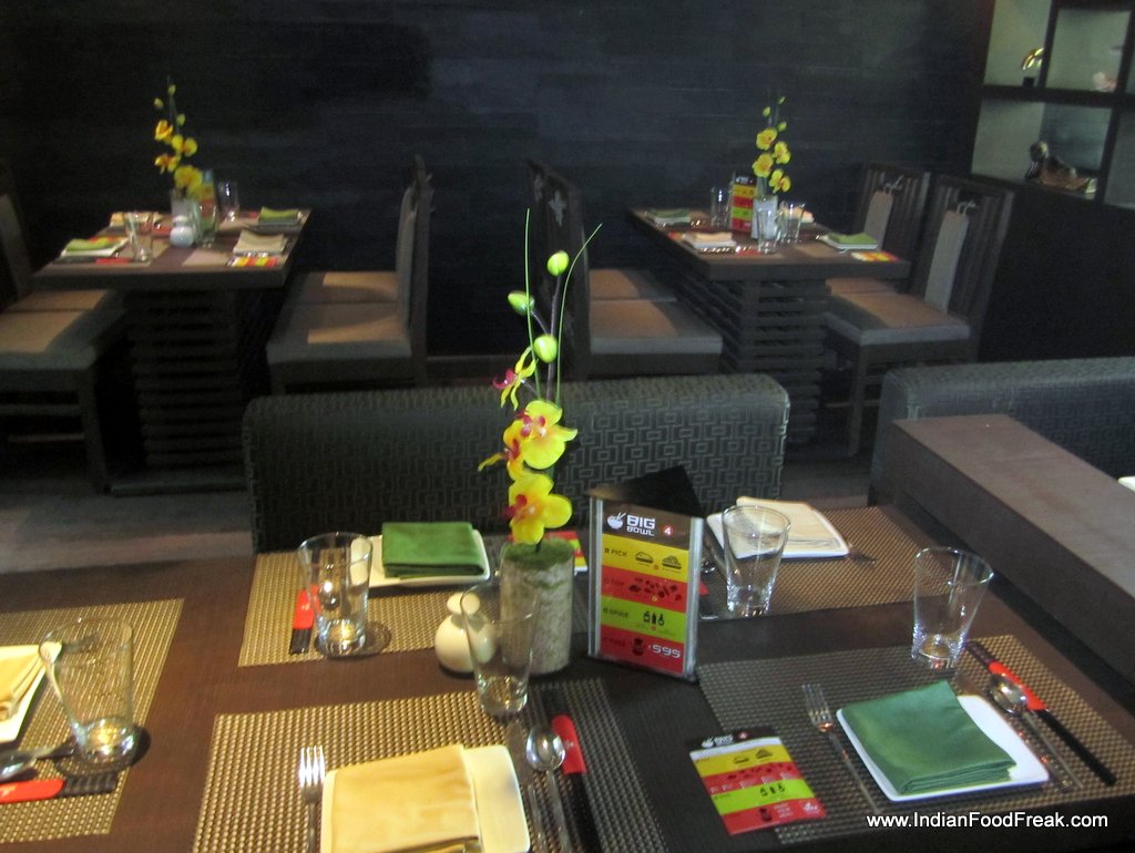 Soy is the key ingredient in any Chinese dish, because its free glutamates add the necessary umami (pleasant savoury taste) to any dish it is a part of. So as I go to visit the restaurant named Soy at the middle lane restaurant strip of the ever bustling Khan Market, I can’t help being excited. If the restaurant lives up to the umami spirit of Soy, I have a treat ahead for me. My climb up a flight of stairs reveals pleasant though overtly oriental interiors. A climb to the second floor has a beautiful terrace with a view of Khan Market and lush green environs. This is where I decide to sit down.