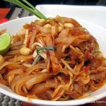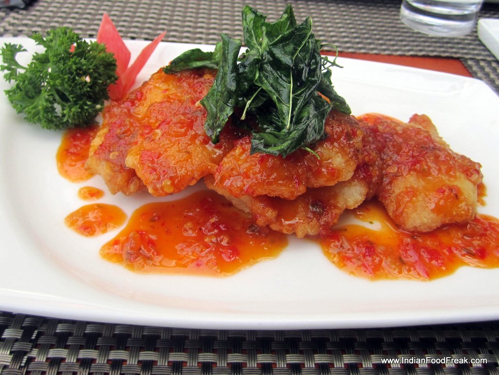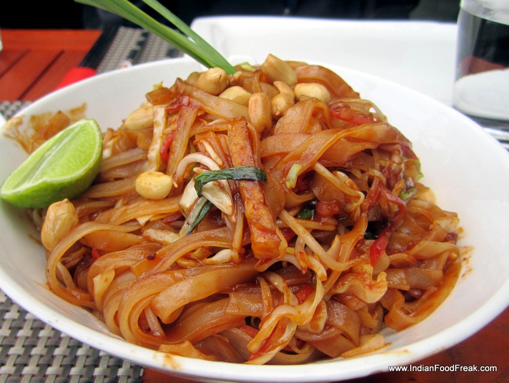 It is time for the main course now. The crispy red snapper in spicy tangy Thai sauce (Rs 445) has a flaky fillet of fish, fried and then tossed in a nice hot and sour sauce. A great dish, but the Thai connection eludes me. The crispy (Rs 355) is a bit disappointing because the lamb (like in most restaurants that serve lamb) is chewy and not crispy as promised. The veg pad Thai (Rs 225) is not authentic as I was hoping it to be. Unlike the Bangkok street food classic, what is served here is sweet, and dense, and lacking the necessary crunch of the fresh long sprouts and scallions.