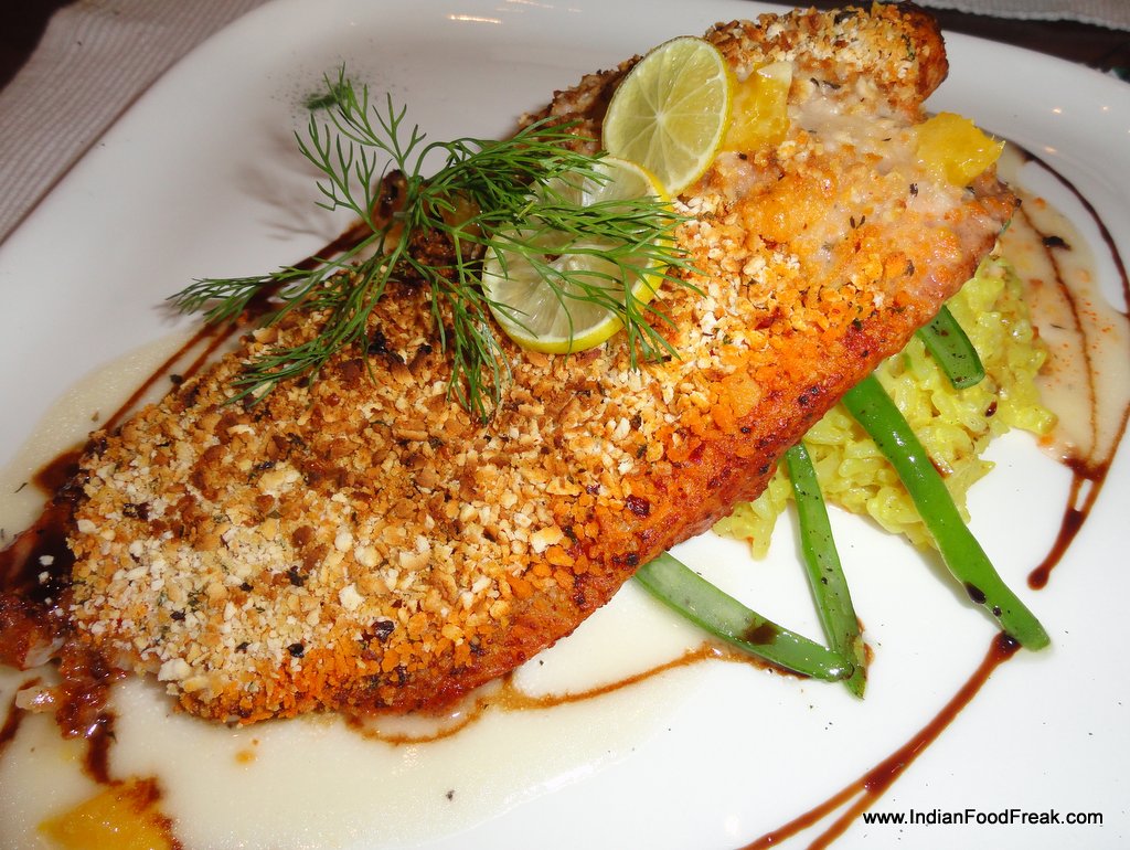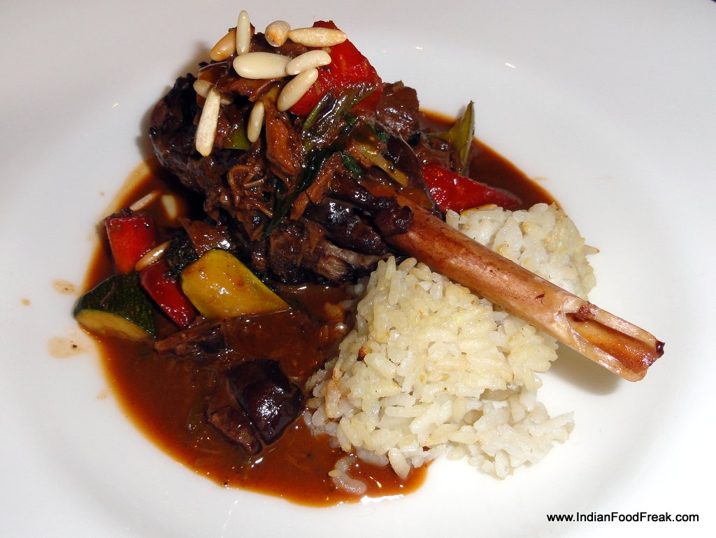 Chilly crusted Cobbler Fish with turmeric risottoMoving on to the main course, Nitin Kumar – Manager at Smoke House Deli suggested I try Chilly crusted Cobbler Fish with turmeric risotto (680) while I wanted Smoked Lamb Shanks (800). With much discussion we decided to order both. Lamb shanks were tender and cooked well, however a common complaint we had for the entire meal that it lacked basic salt and seasoning. Understandably, the Firangs rules the population given proximity of Khan Market to diplomats who likes lower salt content and the meal seems to be customised for them. Nitin’s suggestion of Chilly crusted Cobbler turned out to be the star attraction. This is one dish which will pull me back to Smoke House Deli, time and again. This soft, juicy and flaky fish had retained all its texture and was presented well too. The Panko based crust was mixed with Parmesan cheese, bhavnagree chilli and herbs and the dish kept attracting envious glances from neighbouring tables.