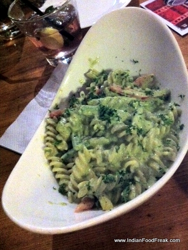 Seated at the corner table, I was first impressed by the vibe, and music – which are lively but not over the top. The place did not convert into a dance club at any time – unlike many other joints in India. The crowd was quite well mixed with young boisterous troupes, to families (sans kids) to smaller groups of friends (both all girls and all guys) just enjoying their beer. Looking through the extensive Menu, I was mortified by the lack of any draught or in house brew. Why would a pub named Brewing Company not have taps or its own brew? Gurgaon is miles ahead with outs selection of in house brews and Mumbai needs to catch up quick.