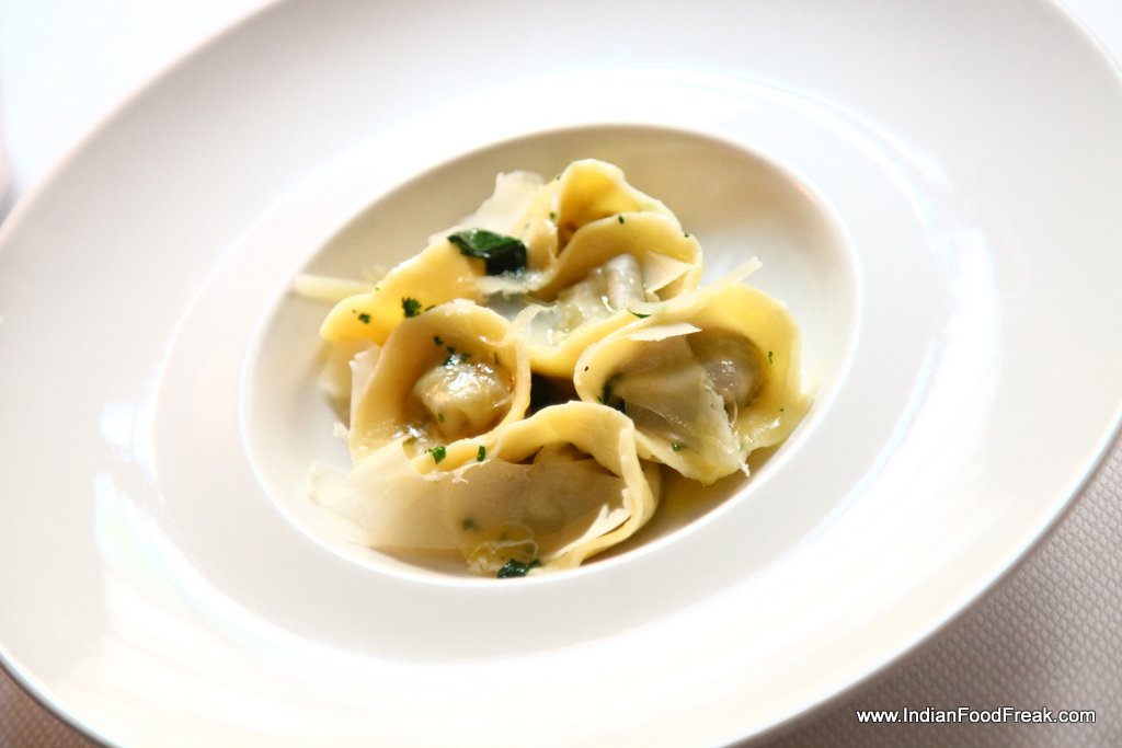 I start my lunch with the essential Tuscan delicacy – crema di parmigiano ‘olio di tartufo bianco’ or light parmesan cream soup flavored with white truffle oil (Rs 725). The soup is an experience strongly recommended. It is velvety and luxurious, with a beautiful smoky overtone of the white truffle oil.
