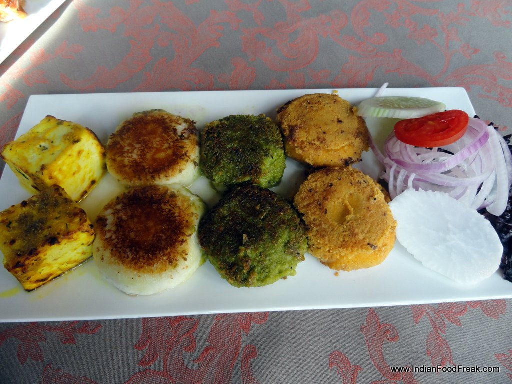 Veg PlatterThis all sounded good, but the litmus test is to get food on the table and taste it. We started by ordering a platter of Veg and Non-Veg kebabs (850/1050) along with Kunna Gosht (1295). Starting with Dahi ke kebab which has bites of pomegranates and muttar kebab with cheese filling, I now knew what chef mentioned moments ago. The dishes tasted like how they should, without the twist overpowering the main dish. Tiger Prawns had excellent flavours of black pepper while Galouti was just melt-in-the-mouth. If the Galouti was served on top of ulte tawe ka parantha, the taste would get further accentuated. Only miss so far was the fish tikka which retained water.