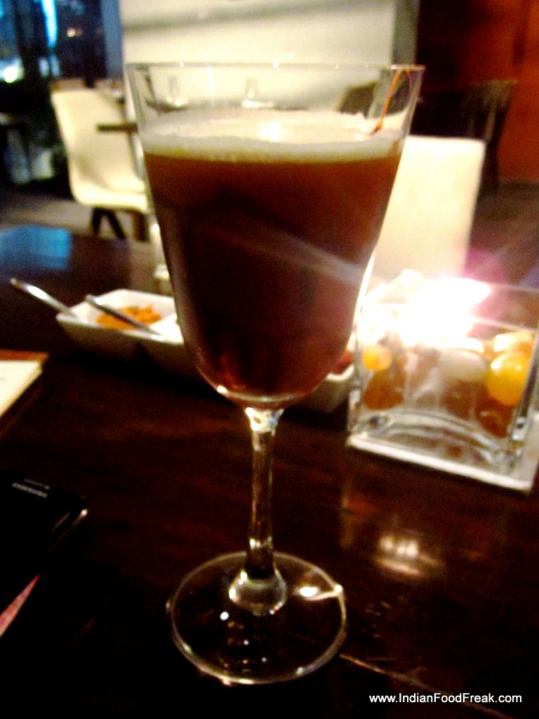 Italian Creame CircleOkay, time for drinks. We called for a virgin mocktail Italian Creame Circle that was a blend of peach crush, orange juice, and grenadine and crushed ice. The sweet taste of grenadine was strong and as the ice started to dissolve, the drink got better. I opted for the Nom Nom Poison – Even though I couldn’t figure out which fresh fruit juice it contained, the mix of white wine and vodka was strong. The main reason I chose this drink was because of the coffee powder. Nom Nom Poison comes with a strong smell of coffee which later mixes beautifully with the alcohol.