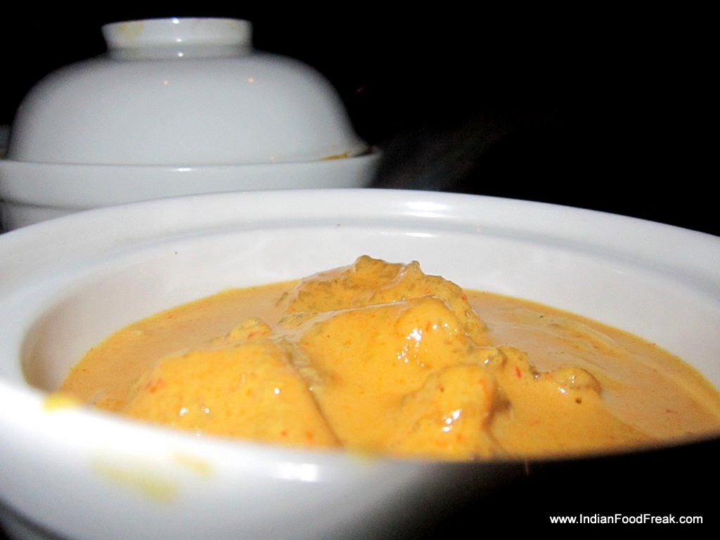Appetizers comprised Scallop Nigri where scallop was tapped on rice and served with pink ginger and wasabi. Next comes what I loved the most – Bird Chilly Prawns. It was spicy and simply yummy! Red chillies made appearances here and there, but this was the most delicious item I tasted at Nom Nom.