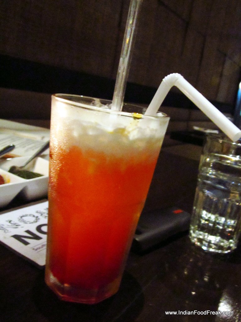 Okay, time for drinks. We called for a virgin mocktail Italian Creame Circle that was a blend of peach crush, orange juice, and grenadine and crushed ice. The sweet taste of grenadine was strong and as the ice started to dissolve, the drink got better. I opted for the Nom Nom Poison – Even though I couldn’t figure out which fresh fruit juice it contained, the mix of white wine and vodka was strong. The main reason I chose this drink was because of the coffee powder. Nom Nom Poison comes with a strong smell of coffee which later mixes beautifully with the alcohol.