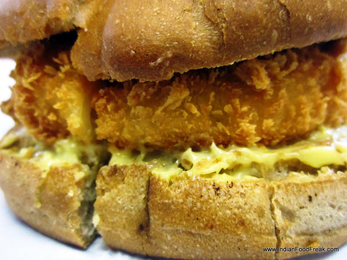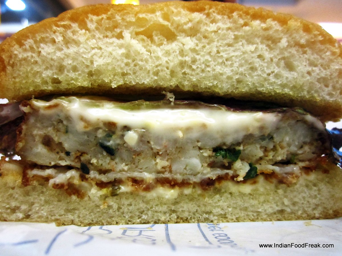 Mac N Cheese Bomb1Would you be hesitant to opt for a veg burger if you’re obsessed by non-veg good? I was, but the Mac N Cheese Bomb was a good try. If you love pasta, this one is for you! It’s a patty of macaroni and cheese topped with creamy cheese sauce. In short, it’s a cheese feast, and a good choice, of course!
