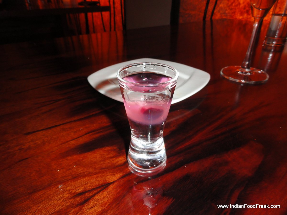 I first tried the Watermelon-vodka martini Jello, a specialty of the place upon Mr. Mathur’s recommendation. The canapé-sized fruit and alcohol-flavoured jello appealed to the non-alcoholic in me, the natural fructose teased by the mild bite of the vodka, while the citrus notes of the Mandarin-vodka jello, were refreshing. Pawan did the honours with the dark brown Maple Bourbon and the transparent Gin tonic. At Rs.1500/- the four piece sampler seemed steep but then when was alcohol, that too the better variety, cheap in our country?