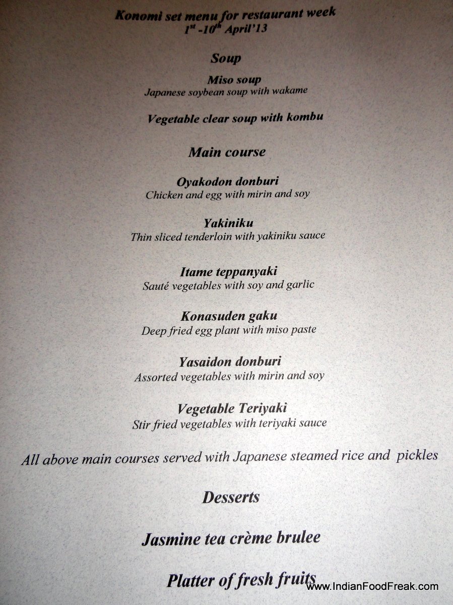 Restaurant Week Menu 2013 @ Konomi, Gurgaon