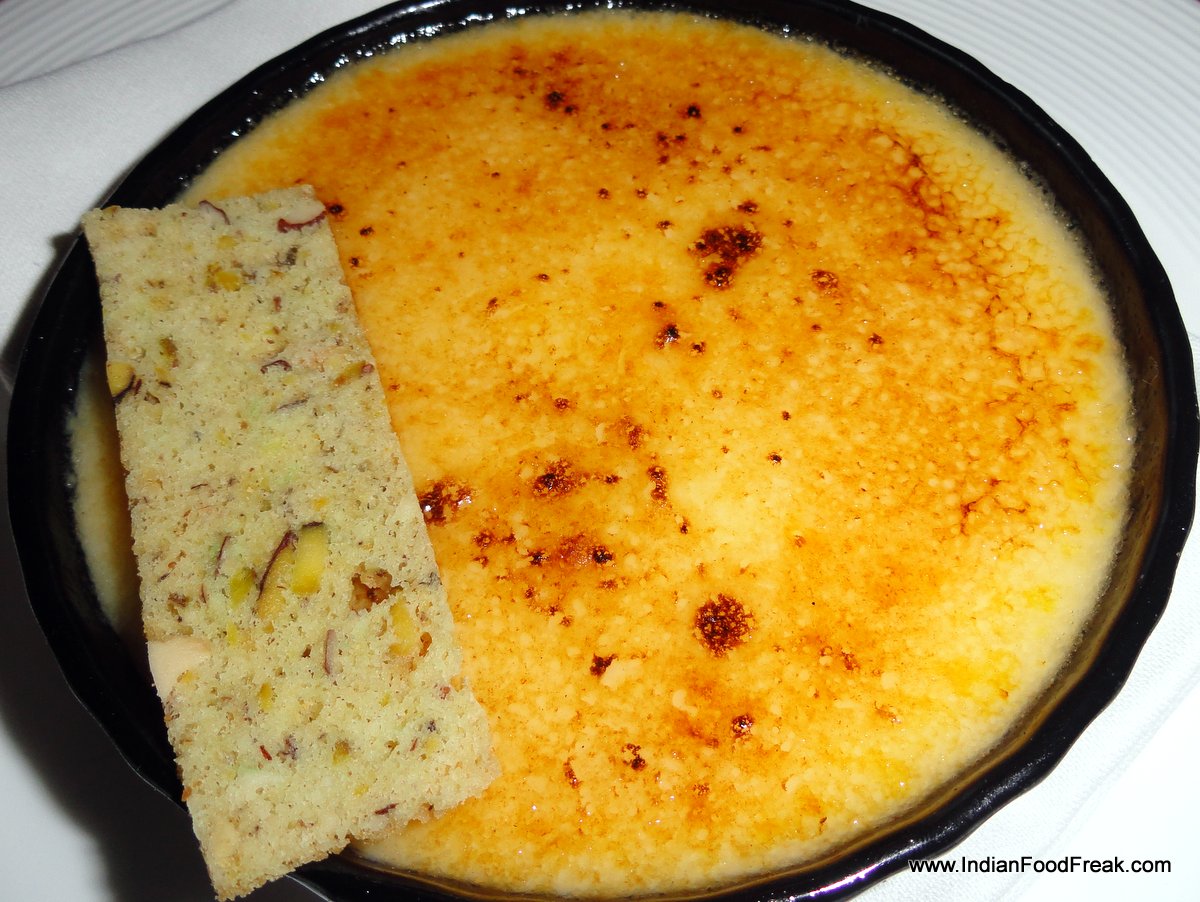 Creme BruleeWhile the dessert for the set menu mentions Jasmine tea crème brulee, in the absence of which we were served a regular one along with a neatly arranged colourful plate of fresh fruits. Chef Kalra had earlier mentioned that while tenderloin is sourced from Europe and seafood from Japan, all local fruits and vegetables are sourced from the hotel’s own organic farm to ensure that the patrons get a wholesome and healthy experience in every way. Having tasted at home the fruits bought from the market, I could appreciate the different sweetness and freshness of the fruits unflavoured by chemicals and pesticides. The crème brulee was light and understated like all of the other food.