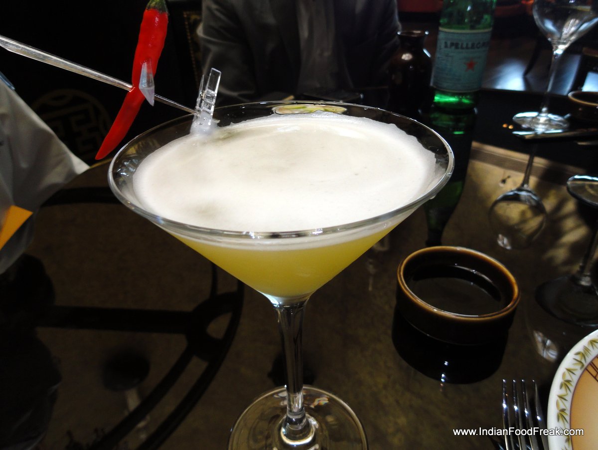 b-bar’s expert mixologist, Geeva Nathan, suggests Spicy Pineapple Martinicocktail, and we did not refuse. A potent mix of chilly infused Vodka and pineapple juice, it manages its flavours perfectly