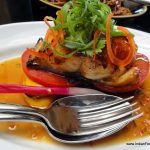 As we are seated we are joined by the executive sous chef Richard Biswas. The menus are different for lunch and dinner timings, and feature many of the international signature dishes. We start our gastronomic journey with appetizers. The chicken dumpling are soft and juicy. Tender Chicken salad (Rs 445), one of the signature dishes at b-bar, is fresh and has small pieces of flat fried noodles, giving it an interesting bite. What follow are bounties from the sea. The fried lobster dumpling (Rs 955) has fresh, flavorful lobster meat inside a crisp dim sum shell and is a great mouthful.