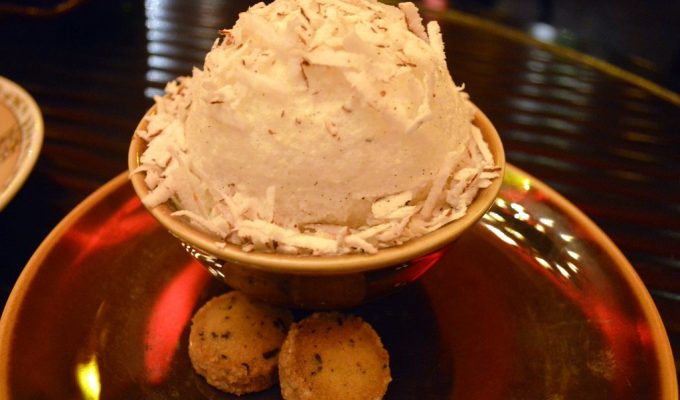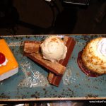 It is time for the main courses to come in. The Singaporean prawns (Rs 955) are inspired by the island nation’s chilly prawns and are exciting garlicky spicy. The b-bar Noodles (Rs 455) are cooked with black sesame and are wonderfully addictive. The star of the meal is the roasted black cod miso yuzu sauce (Rs 1655). Rarely have we eaten a fish so perfectly cooked that it flakes and melts in the mouth. The sauce itself deserves a separate mention because its balance heightens the flavour of the dish to a truly memorable experience. The ginger lamb chop with seasonal vegetables (Rs 2955) disappoints however due to uneven cooking rendering some pieces overcooked and dry and others undercooked. The seasoning is characterless and this dish pales in comparison to the preceding dishes.