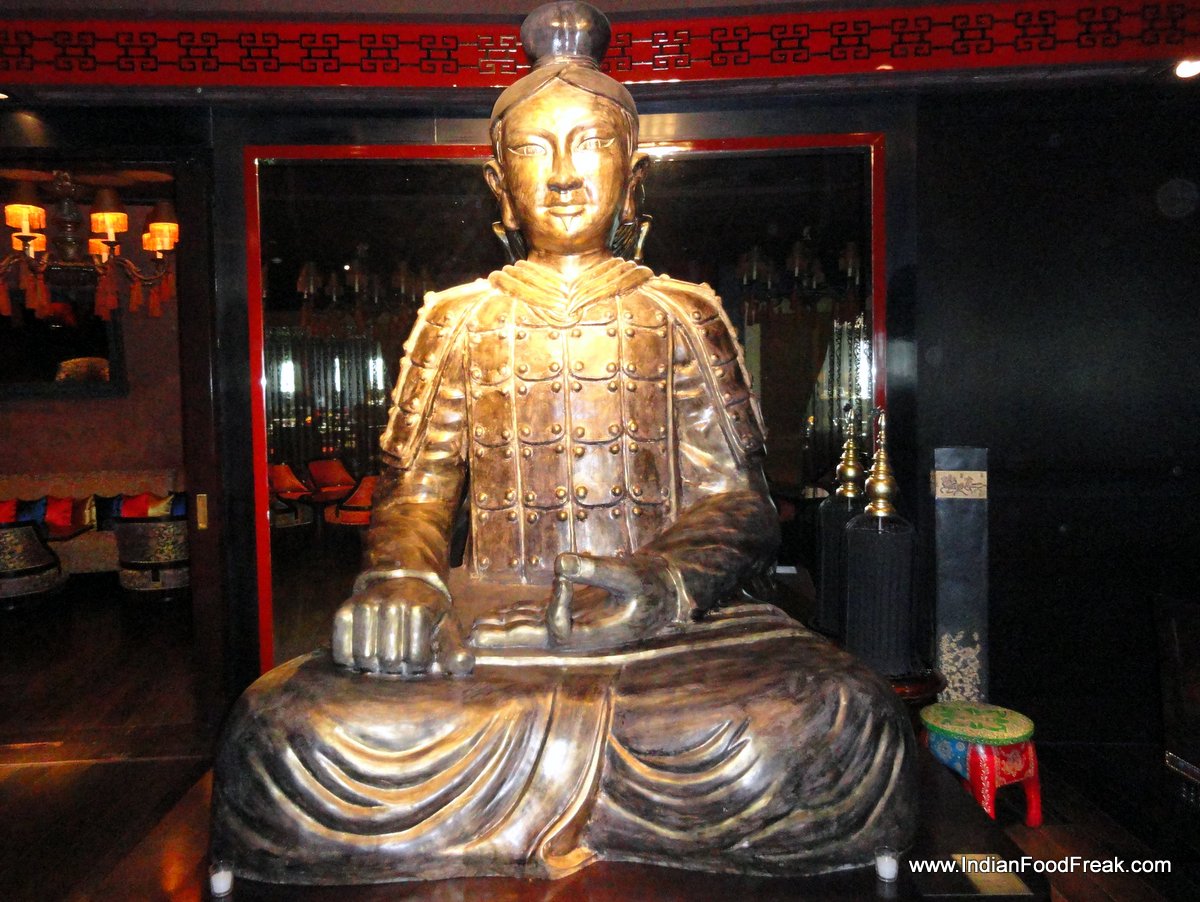 Samurai inside the restaurantBuddha-Bar made its beginning in Paris in 1996. It is a popular bar and lounge internationally, standing for the ultimate cool, with a well-heeled, fashion conscious clientele. Being sensitive to the Buddhist sensibilities in India and a few other Asian countries, the management has changed the name and the interiors suitably. Hence the name b-bar, with statues of samurais instead of Buddha all over.
