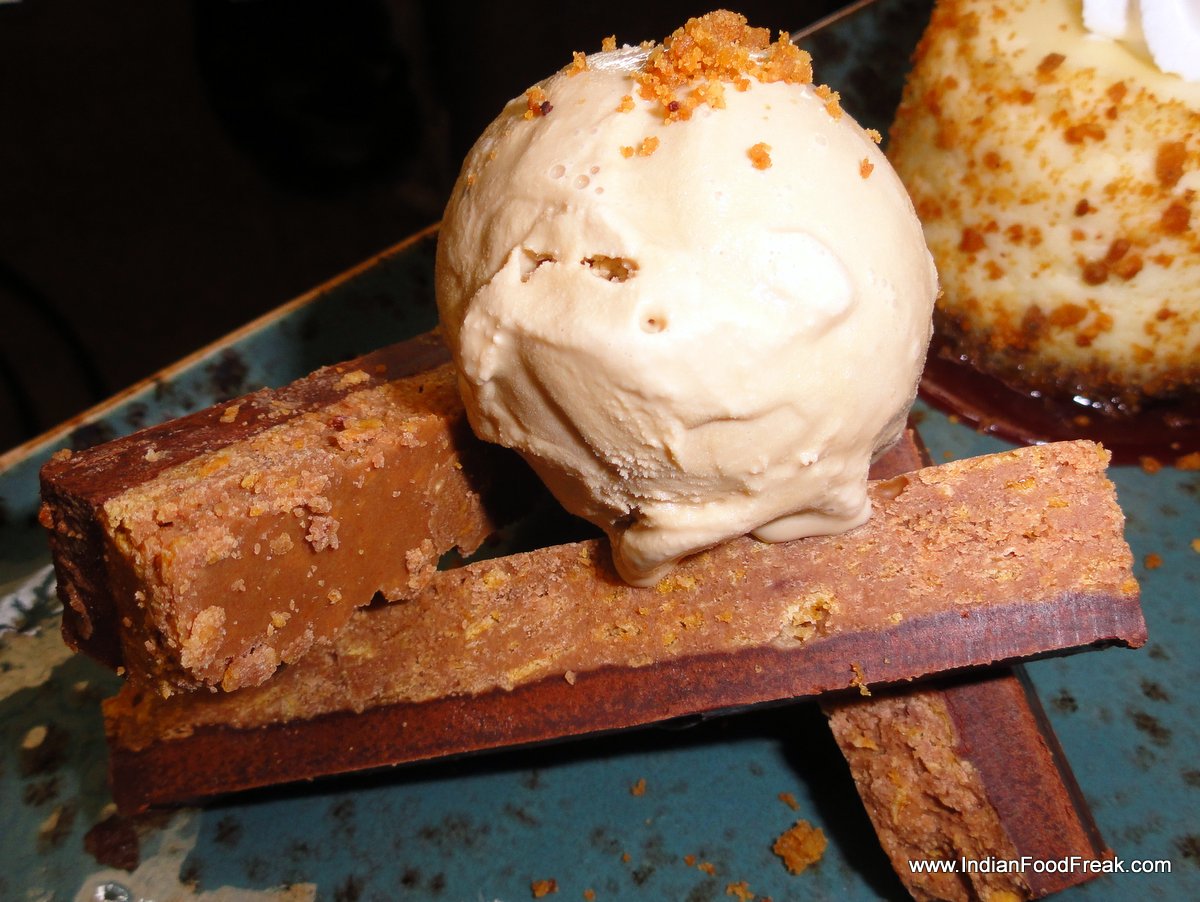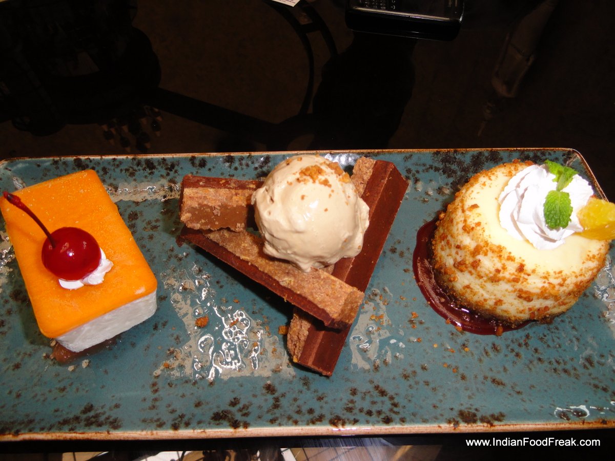 Dessert platterThe dessert platter (Rs 355) has a yuzu parfait with mango jelly, which excites the palate. The sesame bar is avoidable, and the cheese cake is pleasant.