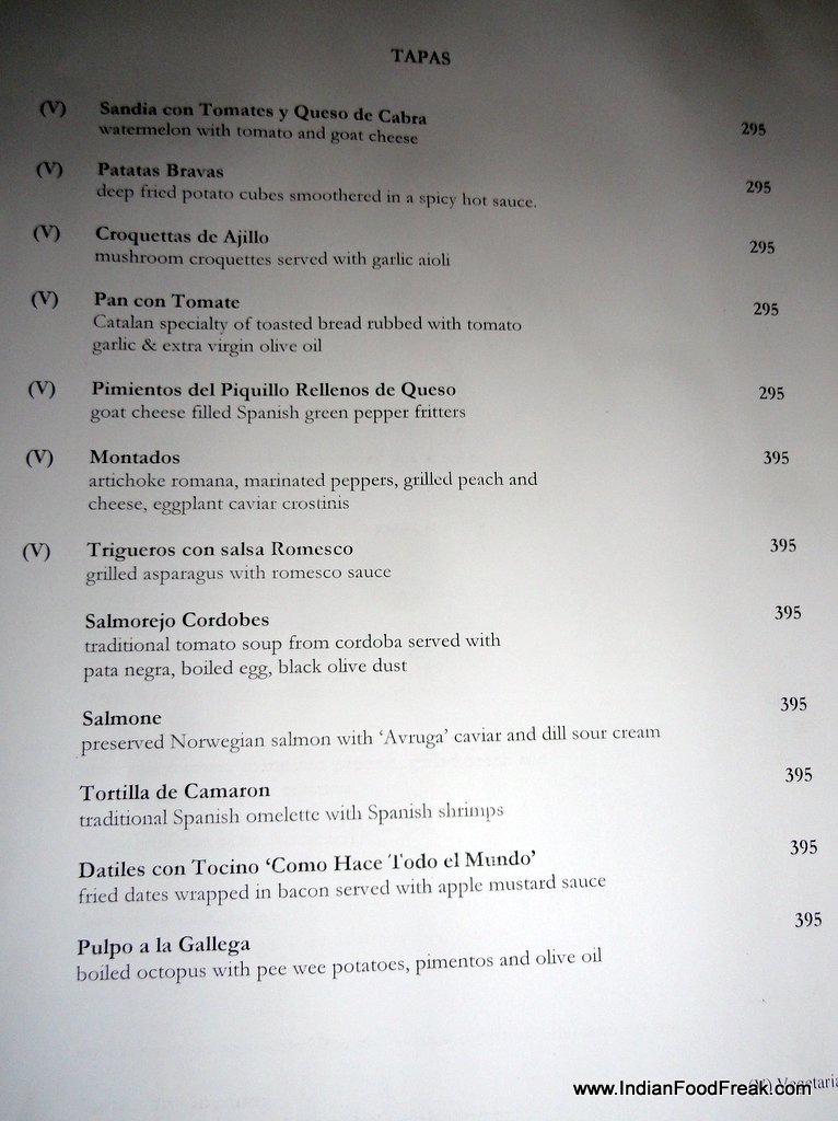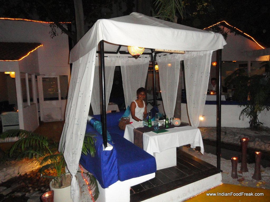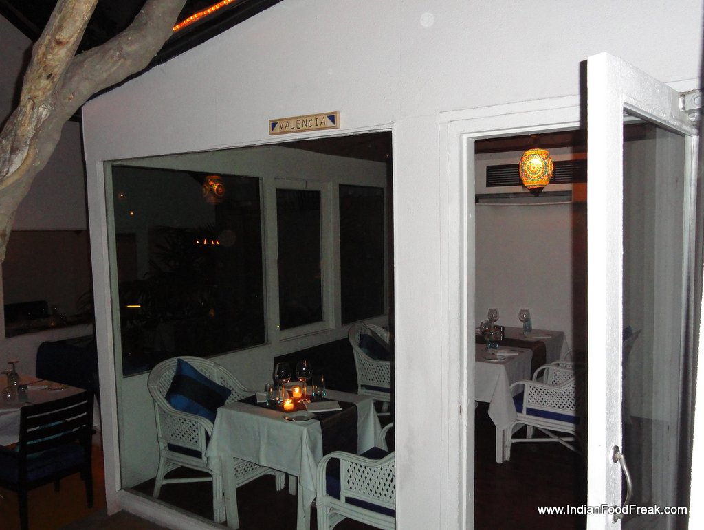 The evening of last Saturday saw Pawan and I walking down a dimly lit cobbled pathway towards what looked like bedouin tents in an oasis, lights twinkling, white canopies dotted over lush greenery, beckoning us to come discover its mysteries. Sevilla, the Spanish-themed restaurant of Hotel Claridges, New Delhi boasts of an ambience that is magical, the garden setting, the canopied and closed generously spaced individual dining areas, the twinkling lights bringing to mind faint memories of the exotic Moors that once ruled Sevilla.