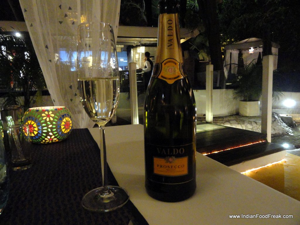 But first, we were seated and offered a very delicious, light and fruity sparkling wine, Waldo Prosecco which hinted at the good things to come. A thin, round, flat bread much like the Indian crunchy matri but with a hole in the middle was tasty with chilli flakes and parmesan adding the right zing. The bread whose dough is made of toasted cereals called Gofio is a staple of the Canary Islands of Spain.