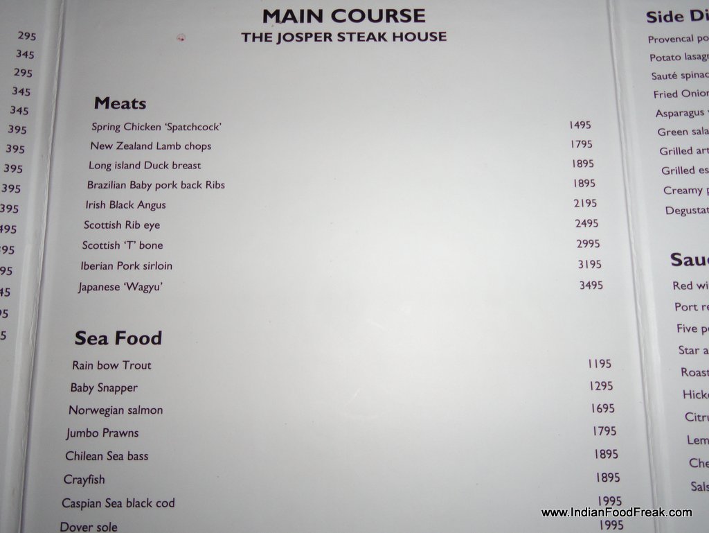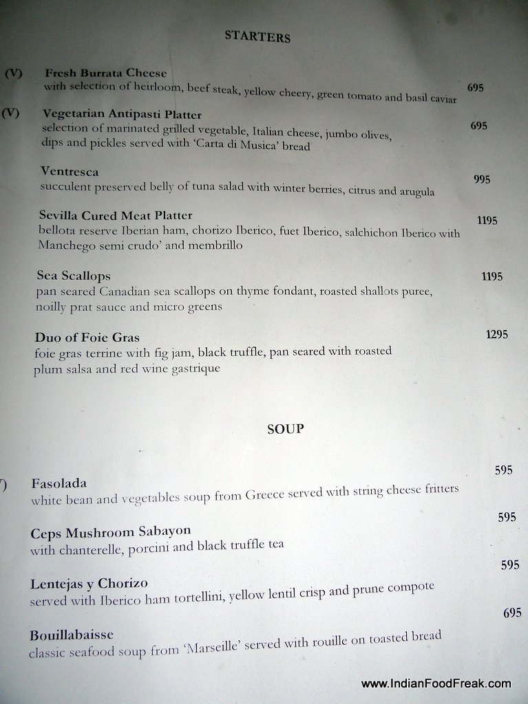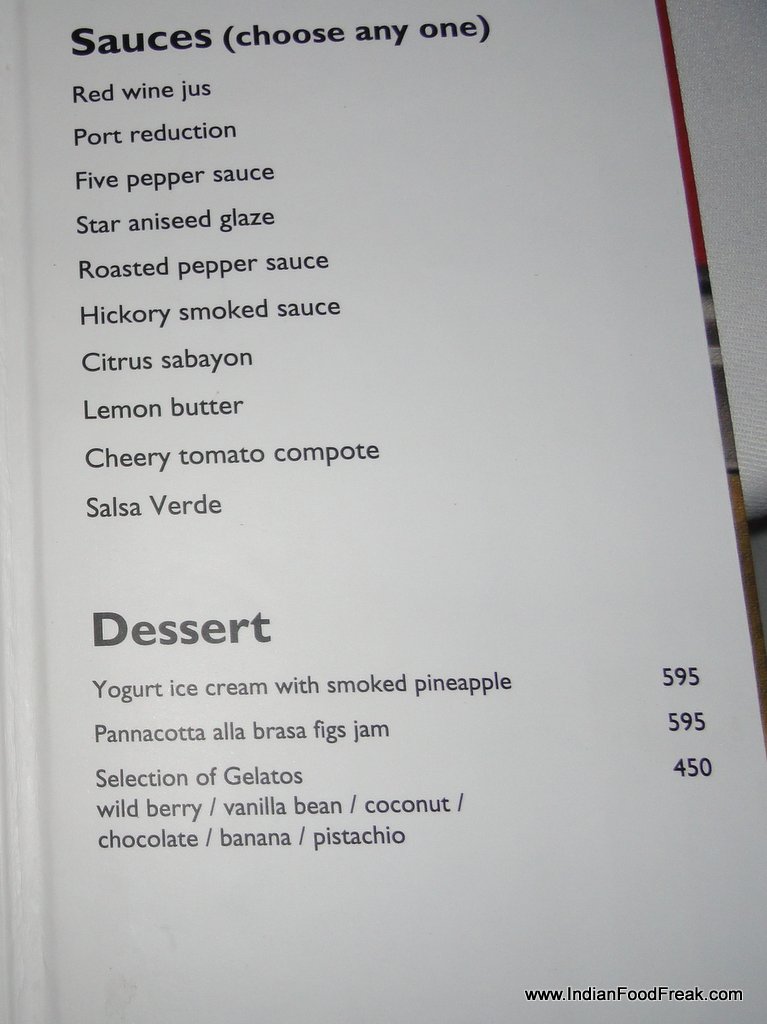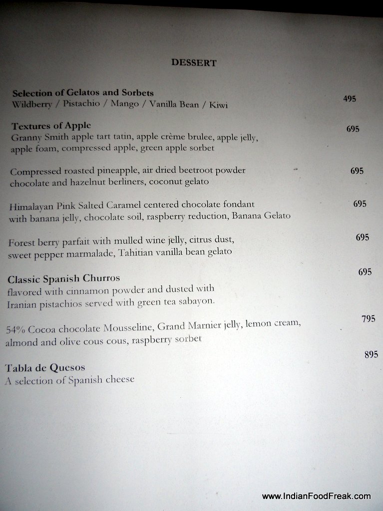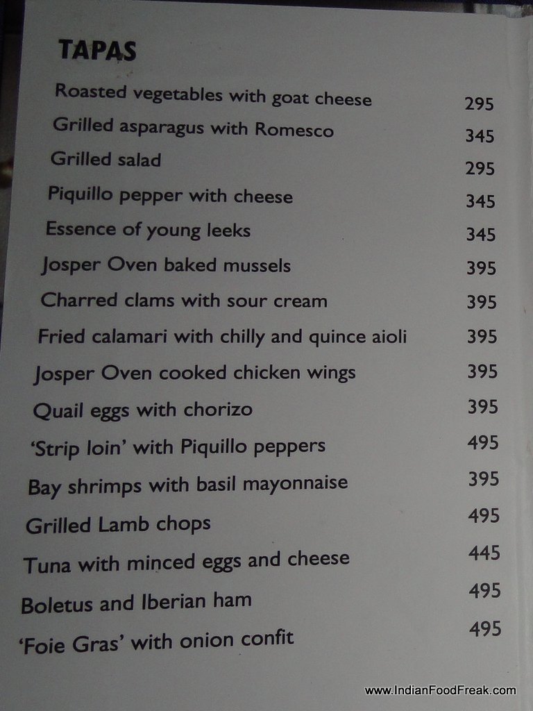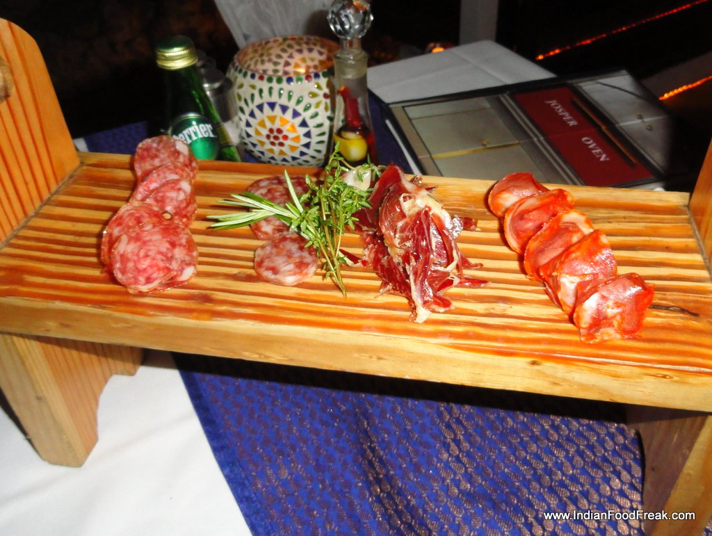 The staff at Sevilla especially Ashwani, the restaurant’s manager was attentive and well informed of the food on offer. Both the sous chef and the Executive chef spent considerable amount of time explaining the raison d’etre of having a Spanish themed restaurant in New Delhi. Great care and attention is being paid to sourcing the right ingredients where even in something as basic as salt, the restaurant boasts of at least 7-8 varieties sourced from far-flung areas of the globe, each variety paired with a particular food. A talk with Chef Neeraj revealed the passion and effort with which this man has conceived the special Josper Steakhouse menu. It was heartening to note that the chef spent his valuable time stopping by at each table, ignoring neither the lone man at a table under a tree nor the family dining in closed spaces aptly named after the cities of Spain.