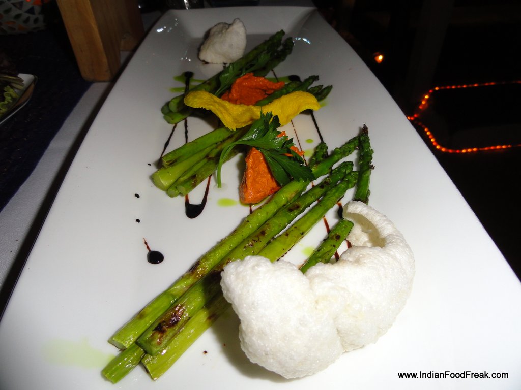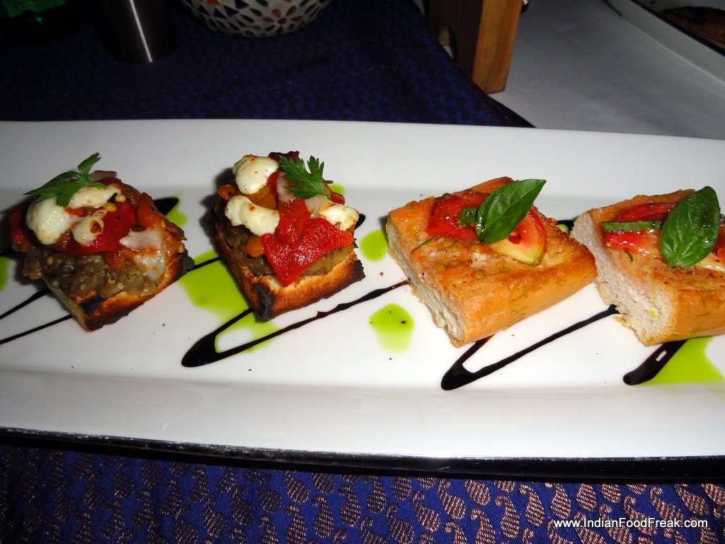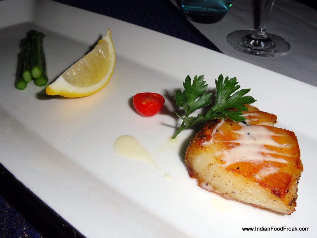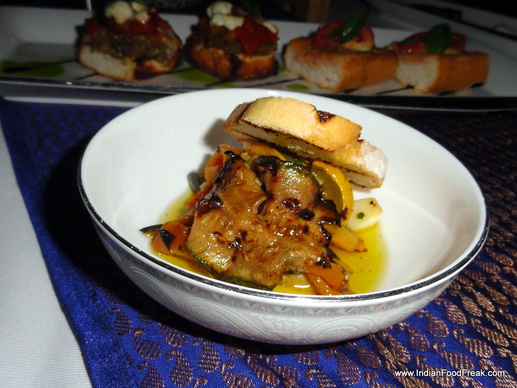 The Pan con Tomate even though not the authentic one, with the bread served toasted with a sliver of grilled tomato, olive oil and sea salt is an example of the simple but tasty version of the original, crusty bread, cut and rubbed with a half tomato, drizzled with extra virgin olive oil and sprinkled with salt. Executive Chef Neeraj, informed me that since the quality of the tomatoes available here were not appropriate they have refrained from serving the Catalan staple in its original form. However, my suggestion that the tomato could be grated/pureed manually in a grater and served in a sauce bowl with olive oil was enthusiastically received by the chef.