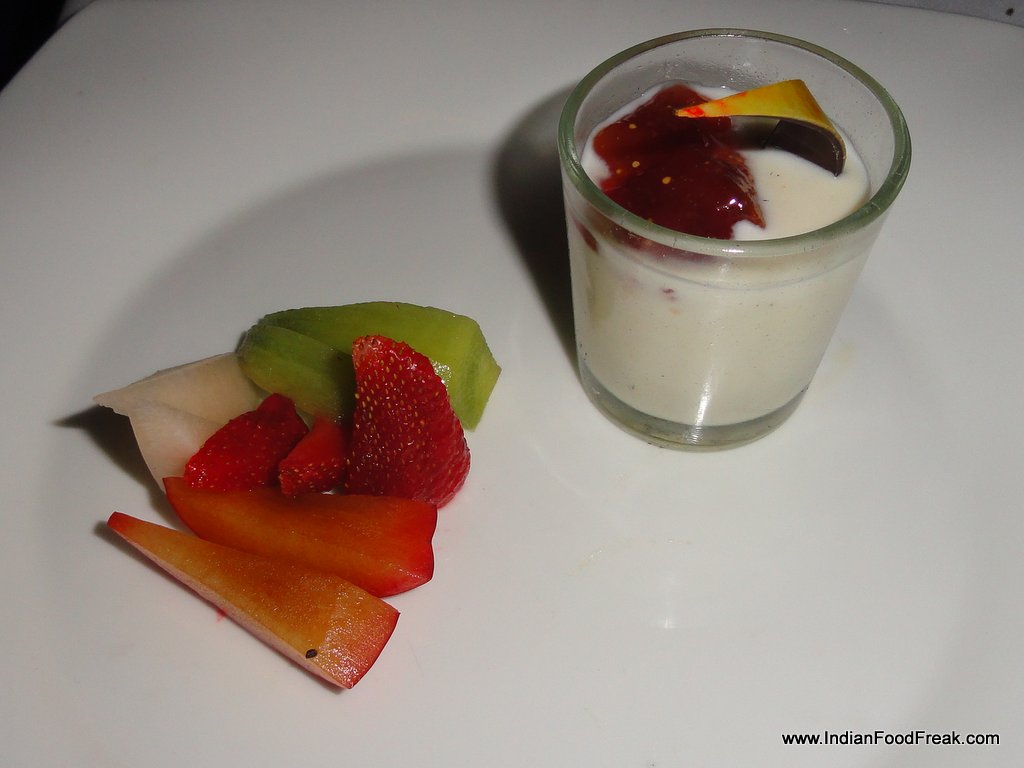 The Pannacotta was liked by Pawan a lot but I found its smoky taste, rendered by the charcoal grill that lifted the meats and vegetables to another sublime level, overpowering in the case of the pannacotta. On the other hand the cold Yogurt served on a bed of diced grilled pineapple was a perfect rounding-off-the-meal dish, the smoky-sweet taste of the fruit dueting playfully with the fermented cold dessert. A glass of Cava (Spanish Sparkling wine akin to champagne) not yet in the wine list would have given a perfect closure to the handsome meal. In the absence of which we were content with two Cortados, (single espresso cut with a little of milk), Spanish style.