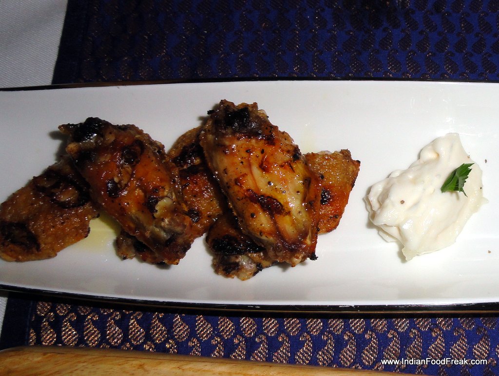 The Pan con Tomate even though not the authentic one, with the bread served toasted with a sliver of grilled tomato, olive oil and sea salt is an example of the simple but tasty version of the original, crusty bread, cut and rubbed with a half tomato, drizzled with extra virgin olive oil and sprinkled with salt. Executive Chef Neeraj, informed me that since the quality of the tomatoes available here were not appropriate they have refrained from serving the Catalan staple in its original form. However, my suggestion that the tomato could be grated/pureed manually in a grater and served in a sauce bowl with olive oil was enthusiastically received by the chef.