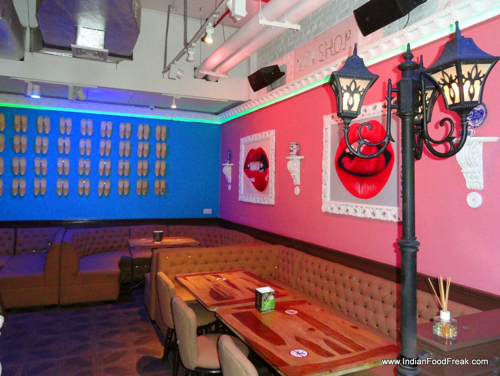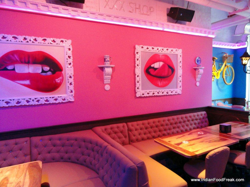 De Wallen is the largest and the best known red light district in Amsterdam and a major tourist attraction. It has some three hundred tiny one-room cabins rented by prostitutes who offer their services from behind a window or glass door, typically illuminated with red lights. This is the inspiration behind the newly opened gastro-pub Amsterdam Kitchen & Bar at the South Court mall in Saket.