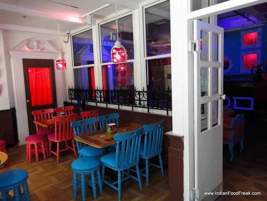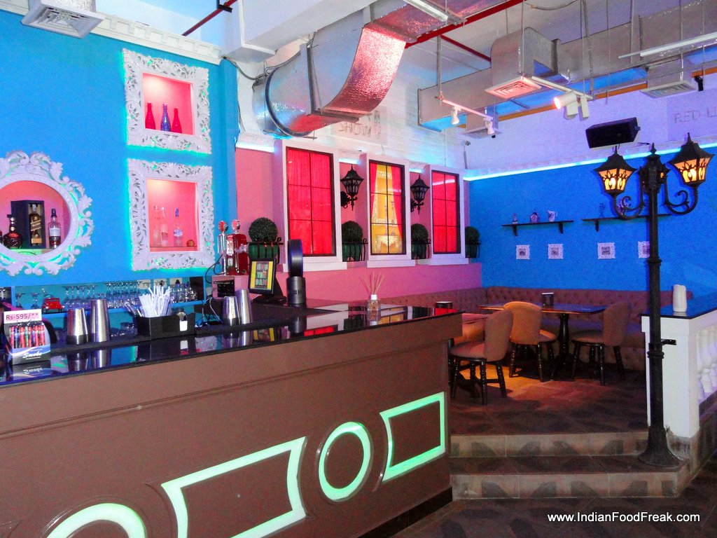 Accordingly the eatery has done a great job in replicating the mood of the area. The end result is something funky yet soothing on the nerves. So the walls have these windows with curtains being replicated through large TV screens. The setting is boudoirish and the predominant colour is pinkish red. All in all this is the kind of place I could spend many hours in. Pawan Soni and I are here for a tasting session with their cocktails and food.