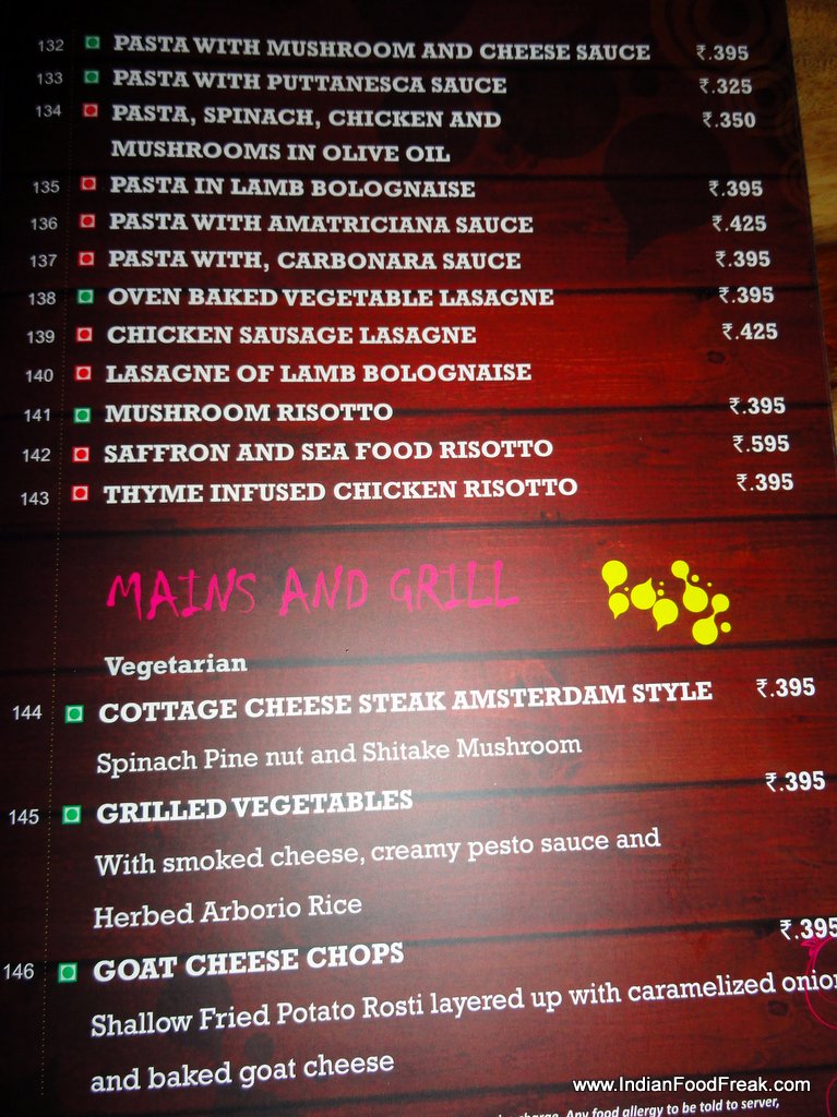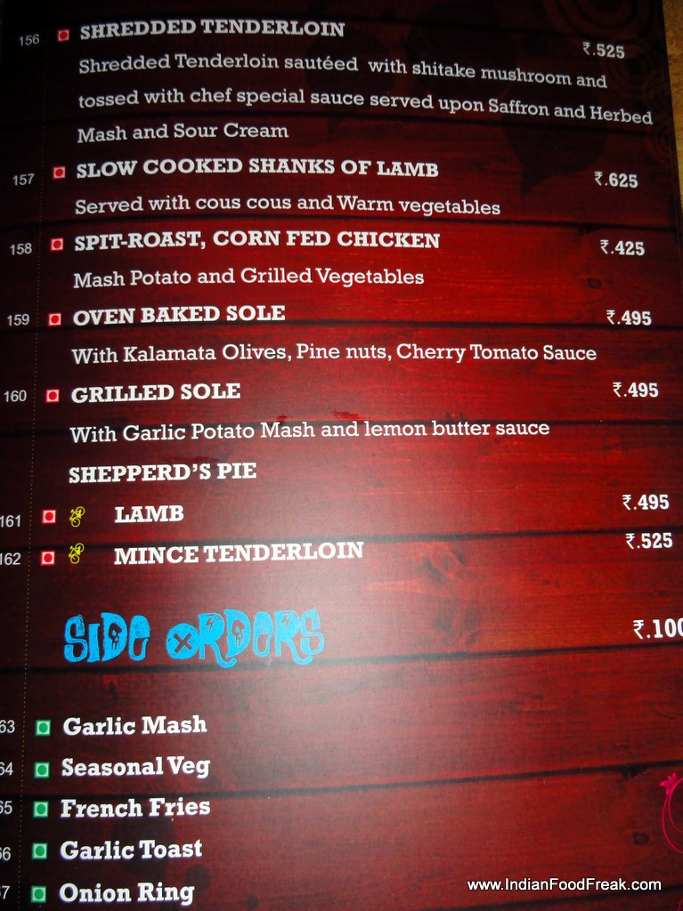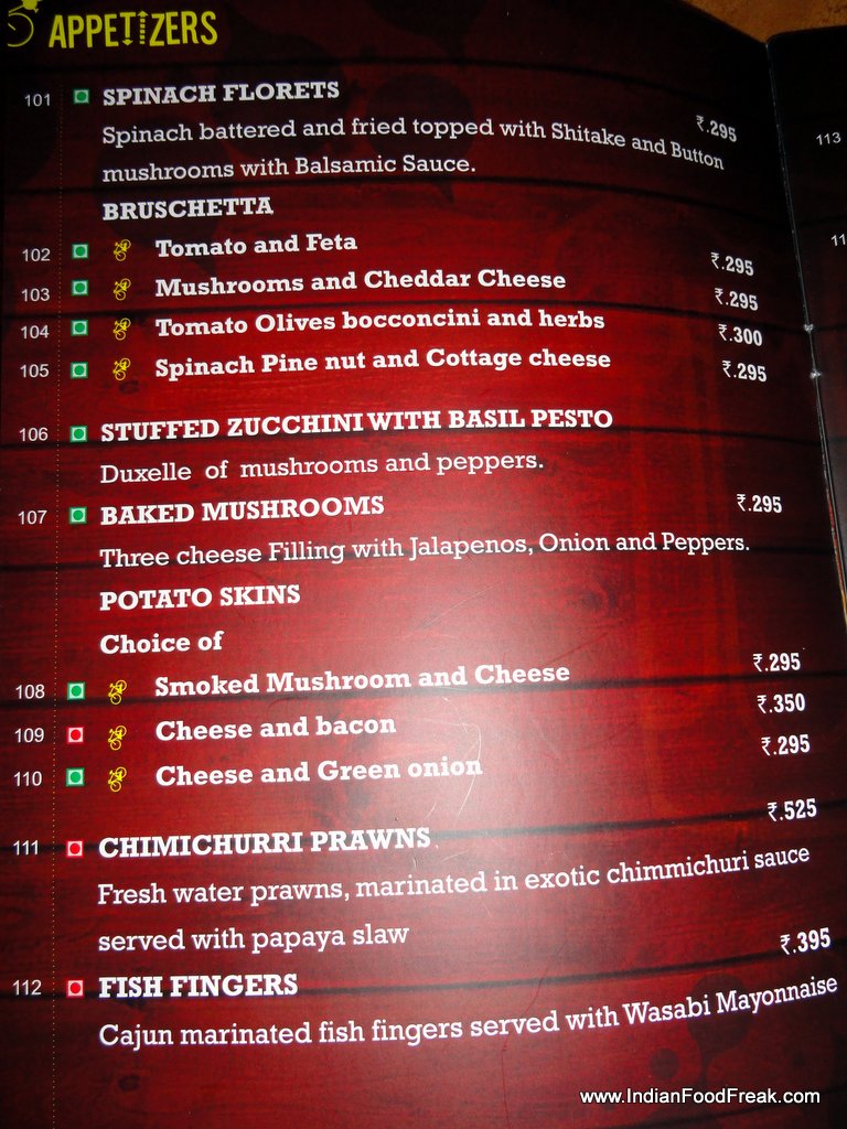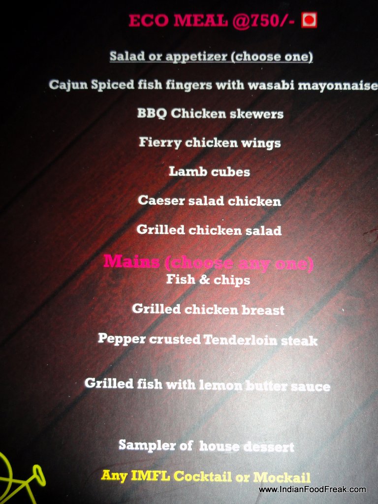 Meal for two: Rs. 1500| Alcohol: Yes | Credit Card: Yes | Timings: 12 Noon to 12 Midnight | Happy Hours: 3pm-8pm (IMFL:1+1, Imported: 2+1)