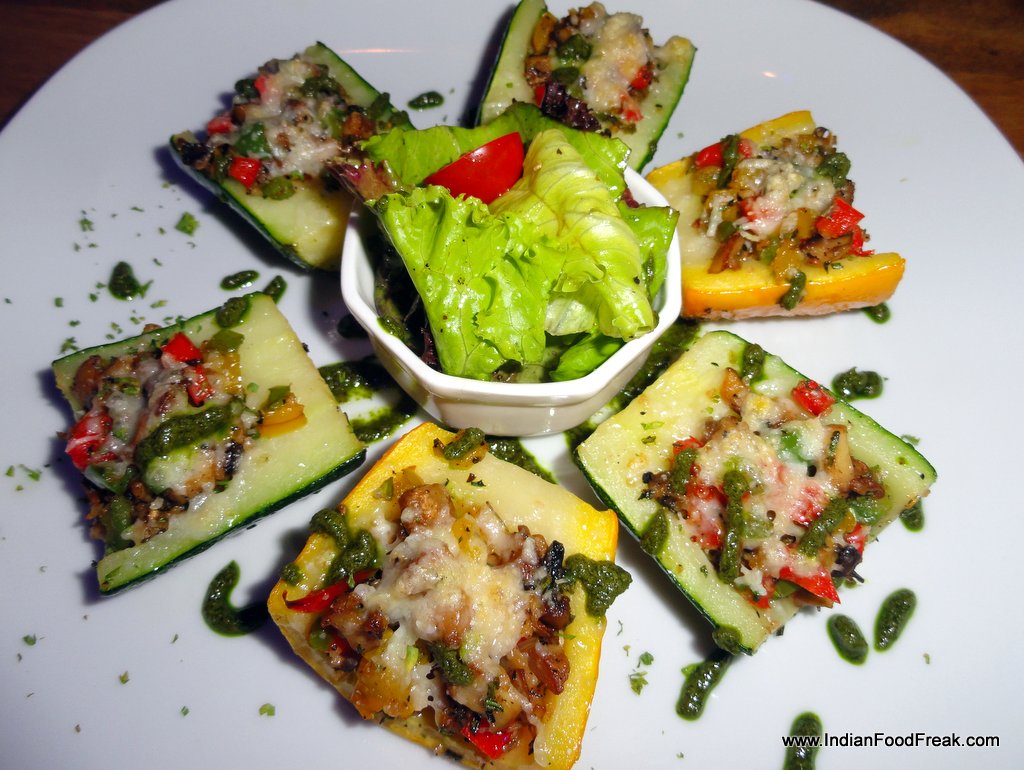 Pawan chooses the restaurant manager Bhuban Koirala’s own concoction called Bhuban’s red passion levitation (Rs 495) as a start. It is a simple cocktail of fresh pomegranate, Bombay Sapphire Gin and celery salt, and is perfectly balanced to deliver an exciting taste. London’s Covent Garden classic, baked potatoes with sour cream and chives (Rs 295) has the potatoes baked to perfection; however the sour cream is a bit too sour, robbing the dish of some of its magic. The stuffed zucchini with basil pesto (Rs 295) is a good dish but not memorable.