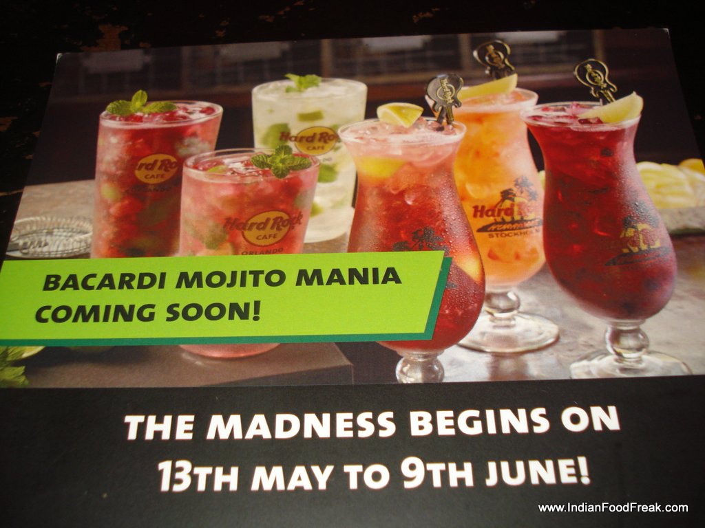 “A balanced diet is a Mojito in each hand”. Inspired with this thought, Hard Rock Café (HRC), India has reinvented flavored variants of this Cuban classic, in their ‘Mojito Mania’ special summer menu exclusive during 13th May – 9th June at all the five HRC outlets across India. An invite from their PR agency led me to preview this menu on a relaxed Friday evening at their Bombay Dyeing Mills Compound, Mumbai outlet.