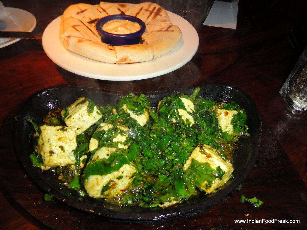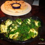 Moving on to try a local flavour from ‘Meri Dilli’ section, we ordered overnight marinated paneer cooked with Spinach and served in sizzler plate with Pita bread and charmula yogurt dip, which Hard Rock Cafe strangely calls Saag Paneer (335). Saag has a consistency of kashmiri haaq, and tastes great when put inside a pita bread like a sandwich. Even a non-paneer lover like me, couldn’t resist taking multiple bites.