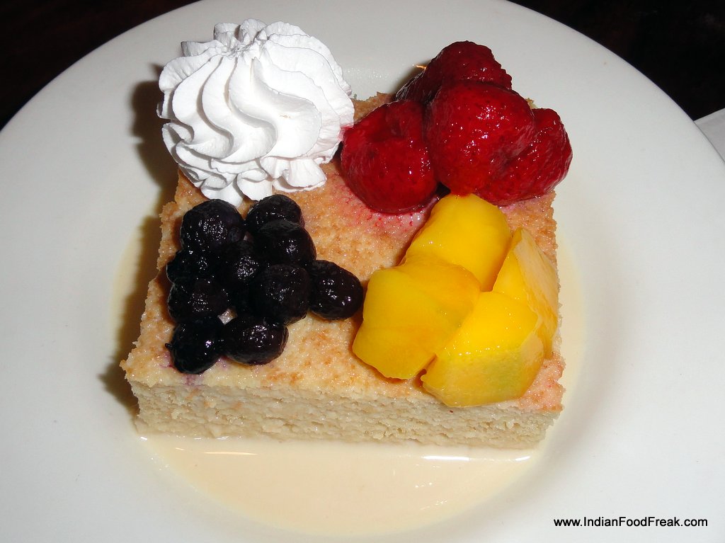 The meal is incomplete if you haven’t tried the dessert – Tres Leches(340); a three milk sponge cake soaked in condensed, evaporated and whole milk, topped with cream, mango, berries and strawberries. It is an amazing end to a very satisfying meal, even though the origin of this dish is disputed. However given its popularity in Latin America, it has been part of the worldwide menu at Hard Rock Cafe.