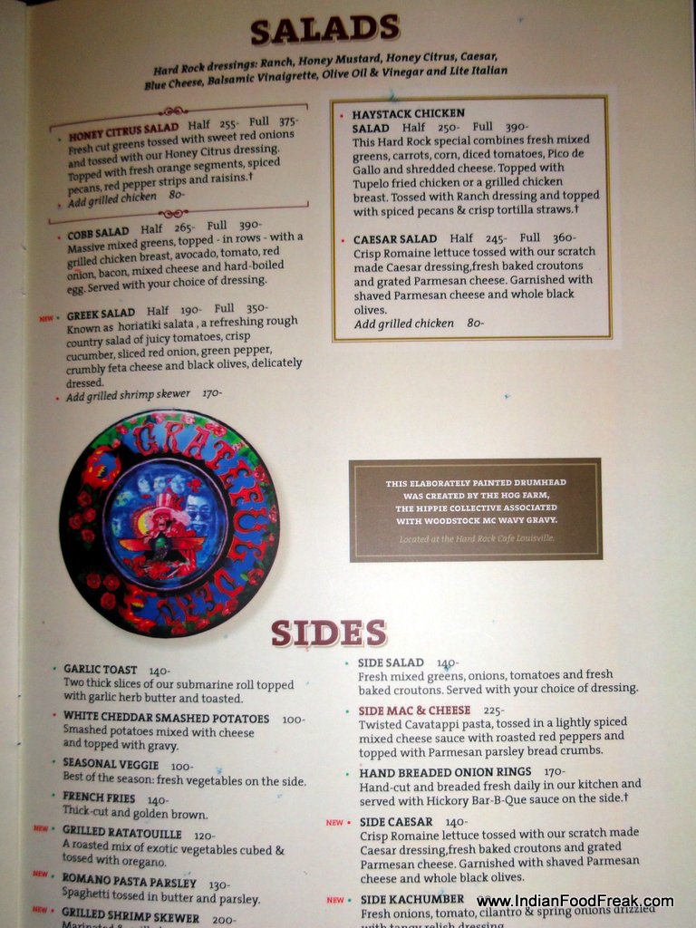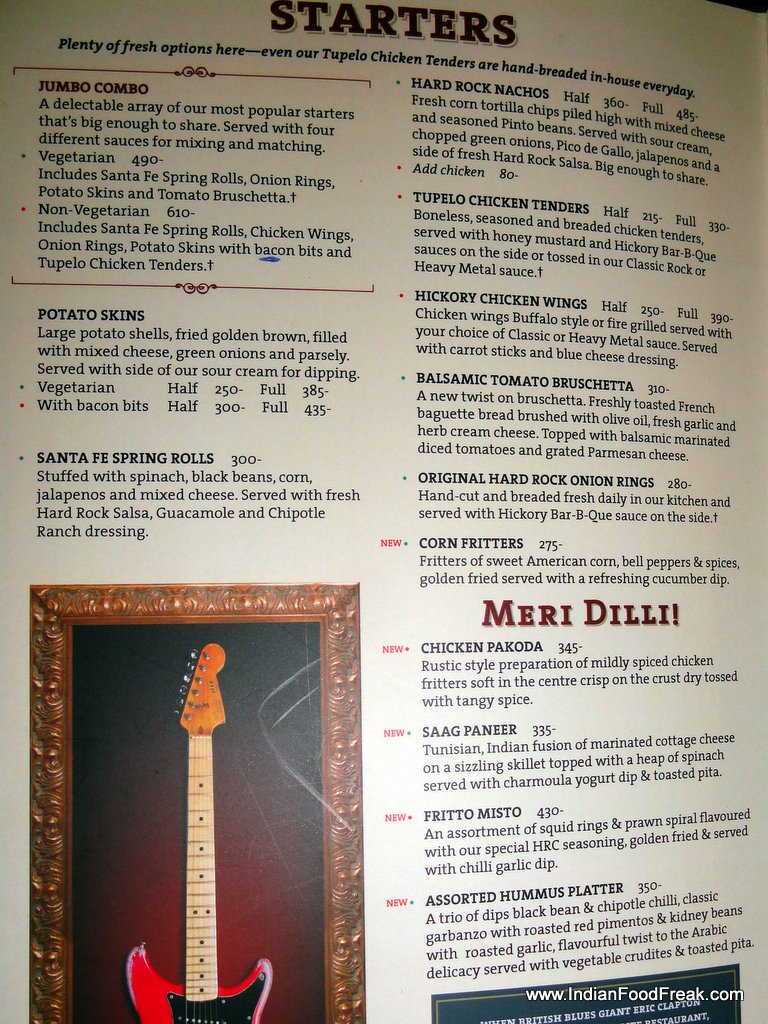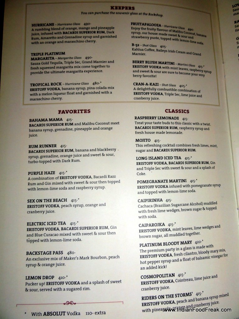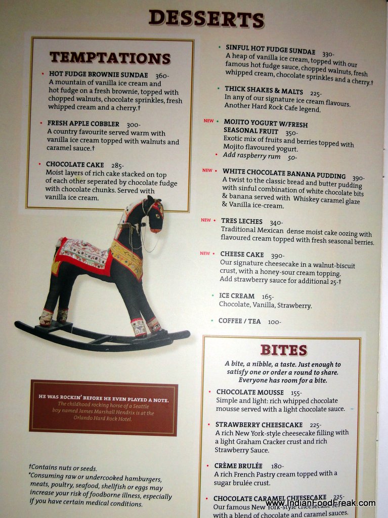 Address: Hard Rock Café, Bombay Dyeing Mills Compound, Pandurang Budhkar Marg, Worli, Mumbai 400 025| Tel: +91 – 22 – 24382888