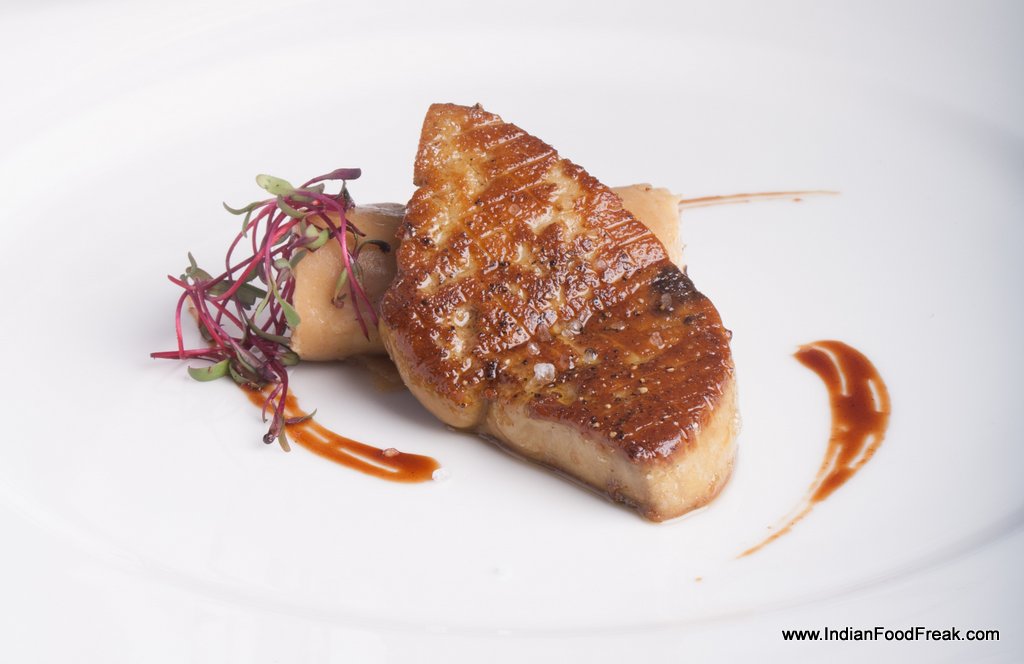 After a few sips of the drink we were served the LTO Smoked Clam chowder (Rs 225) which was a delicate tasting soup. Colours and simple flavours bowl me off and what I got next was a sure winner, Beetroot Pannacotta with Walnut and Goat cheese crumble was served as amuse bouche. This dish, though vegetarian, caught my eye for its concept, presentation and the taste. Also, in line was the Brie Tempura (Rs 265) which was served with plum sauce pickled grapes and beetroot. Sushi snobs will love this place as it has a wonderful array of sushi and nigiri rolls, I had the Prawn Tempura Roll (Rs 300) and the Tuna Nigiri (Rs 485) both of which I loved. I also had the Smoked Foie Gras (Rs 695) which was served with a beautifully made fig pudding – so much so that I loved the fig pudding more than the foie gras itself.