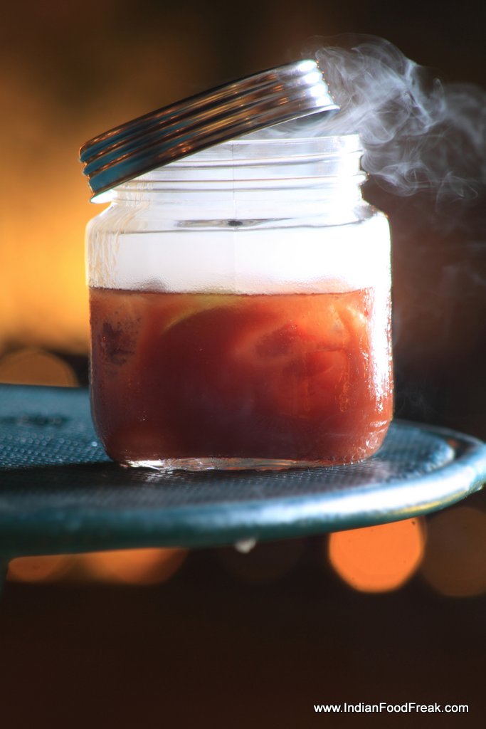 Since the ambience had already set my mood, I, for the first time ever in my life, volunteered for a 10 course meal. I was first served a bread platter which had onion focaccia, a multigrain bread with whole grains both of which were served with basil butter. . The focaccia had an overdose of oil and the basil in the butter could hardly be identified. Having heard a lot about the drinks at likethatonly from my blogger friends, I decided it’s time for me to place my drink orders. I asked for the LOTTA (Rs 400) and the likethatonly (Rs 400) both of which were very well made. For once I was happy to have not been served sugar syrup in the name of a cocktail.