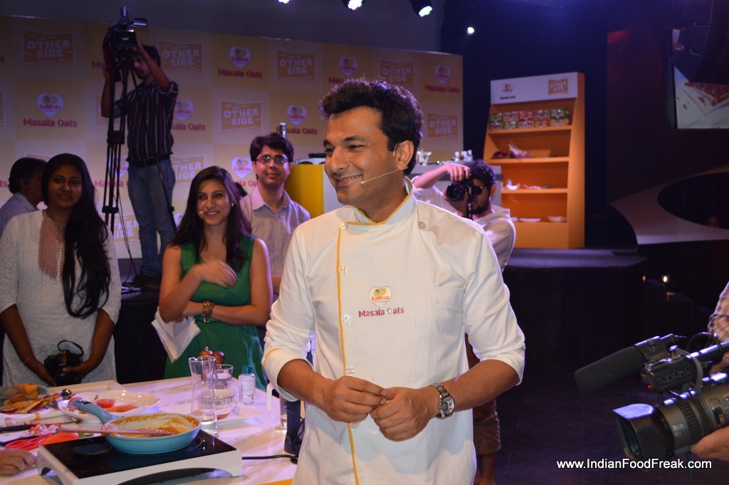 I had one to one chit-chat with Chef Vikas Khanna for sometime which ranged from his interests and his experience with Master Chef India. It was a very proud moment when he mentioned that he follows Indian Food Freak, and unlike others also spoke about some of the posts he has read on the website. I cannot be happier!
