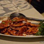 Luckily the Chicken dry red chili (385) and crispy fried lotus stem (320), came to the rescue. Both the dishes were excellent. Red chili chicken is hot but addictive. Each bite led to the next and then to the next.