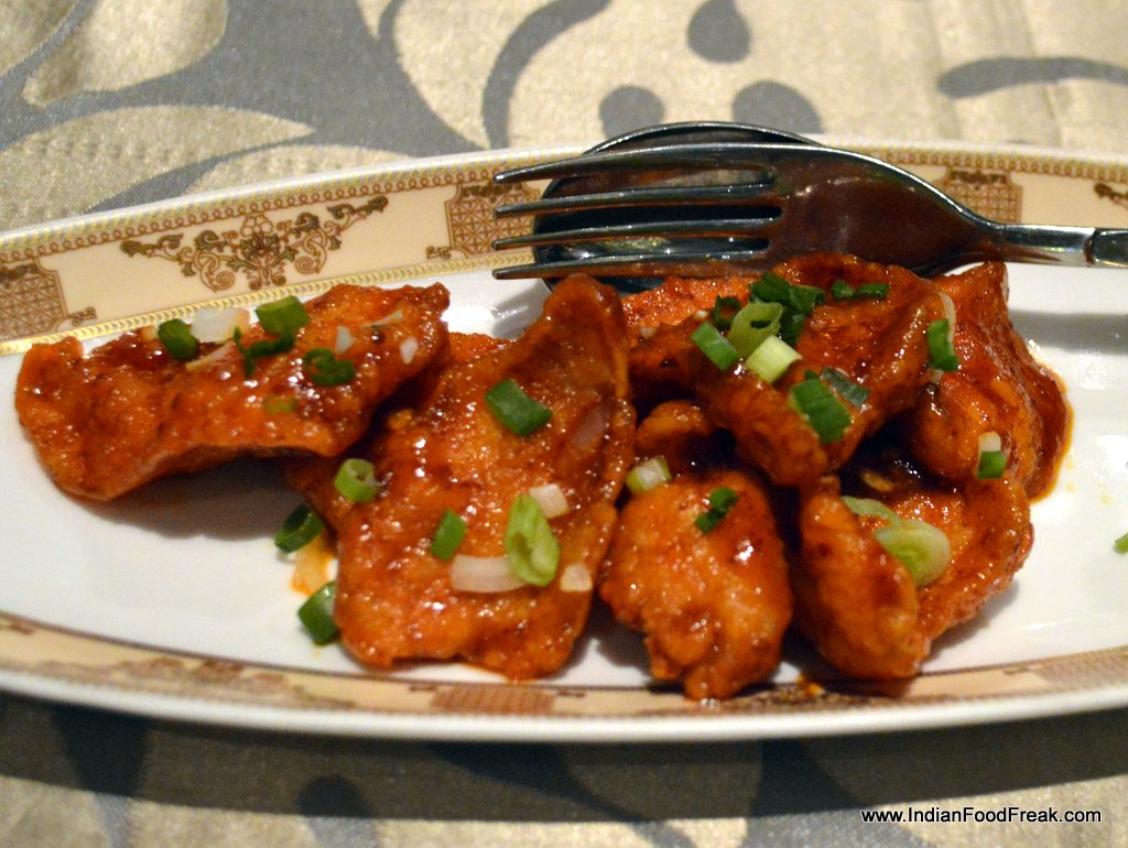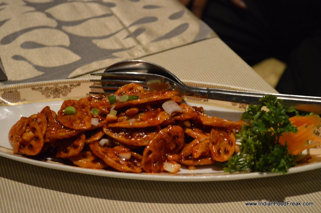 Luckily the Chicken dry red chili (385) and crispy fried lotus stem (320), came to the rescue. Both the dishes were excellent. Red chili chicken is hot but addictive. Each bite led to the next and then to the next.