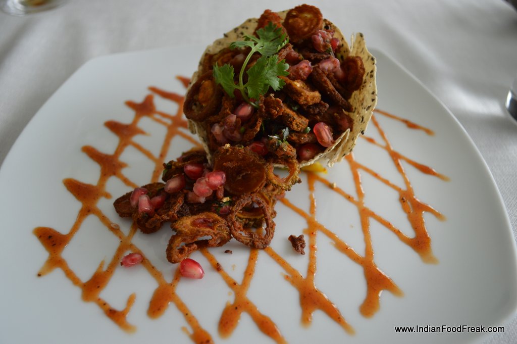 The first dish to arrive on our table is a vegetable that is normally forbidden in restaurants. Kurkure karele ki chat with fresh pomegranate seeds (Rs 425) is crisp, sweet, spicy, tangy, bitter and rather addictive. The platter of trio of beans (Rs 425) has authentic tasting green beans poriyal, a very clever edamame masala, and soft rajma shami kabab, with each of the components being an enjoyable experience.