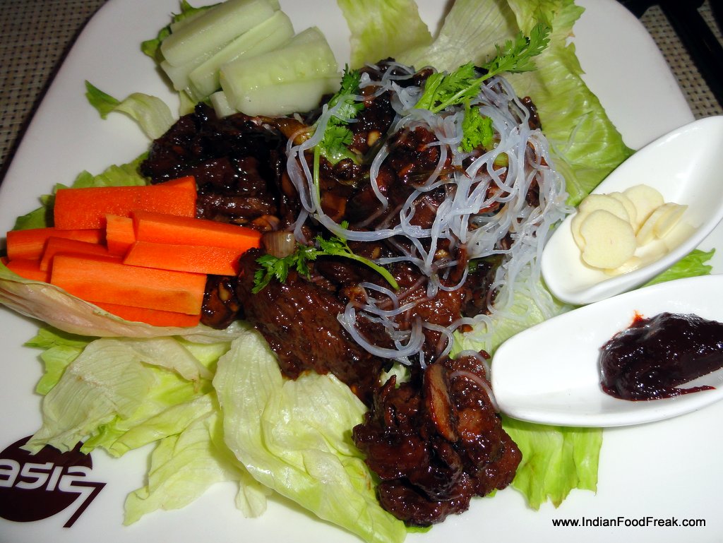 However what came next was a star dish once again. Slow simmered fish with whole Sichuan pepper and dry chilli (525) will surely blow your mind with chilly heat and long aftertaste. I am fond of Koran cuisine but the Bulgogi (495) that was served in huge portion, missed the mark. Chef Chow Man noticed my plight and he went into the kitchen to send back the dish that could easily compete with the best Korean outlets in India.