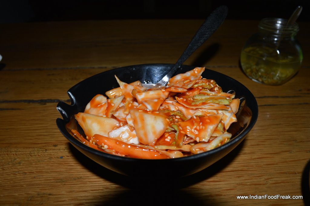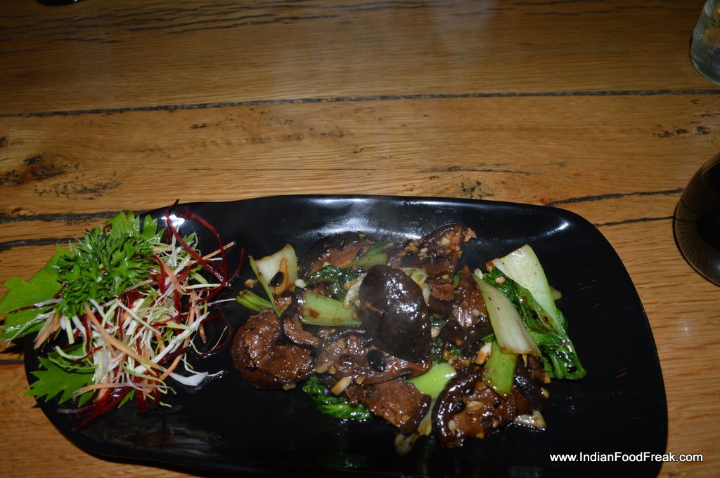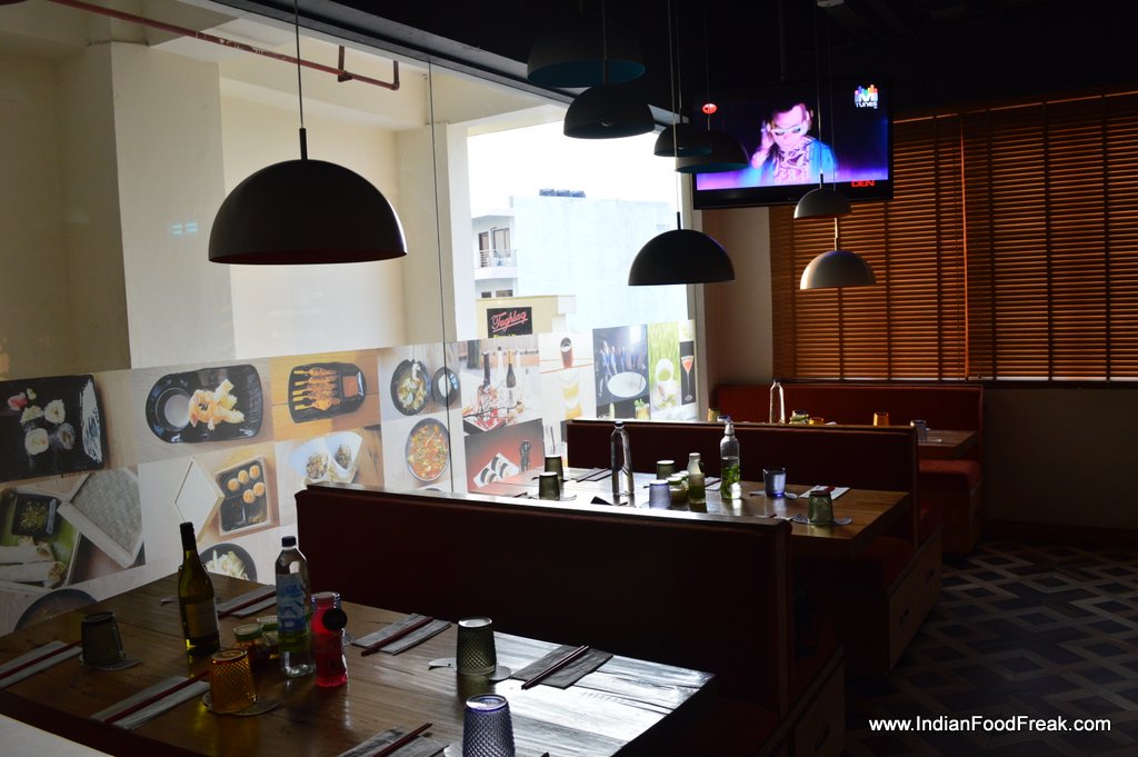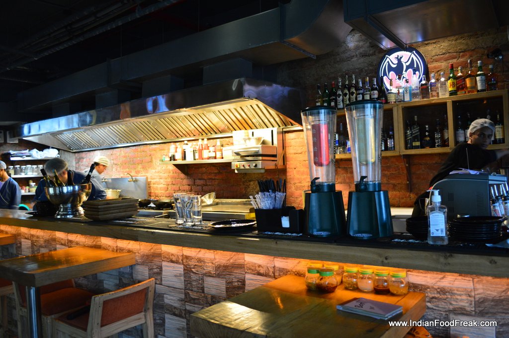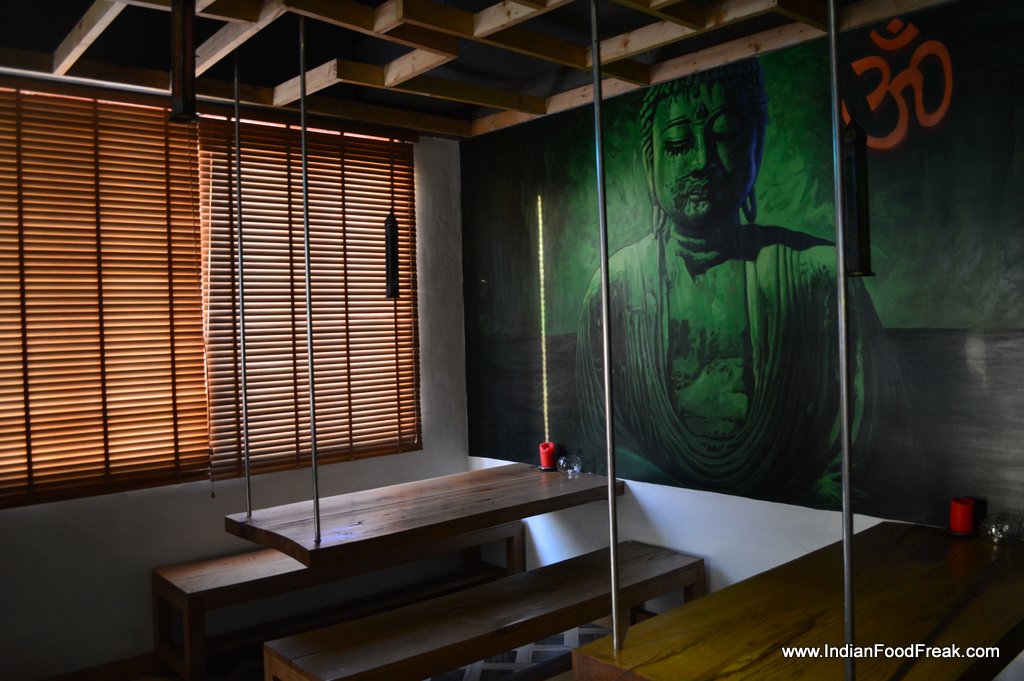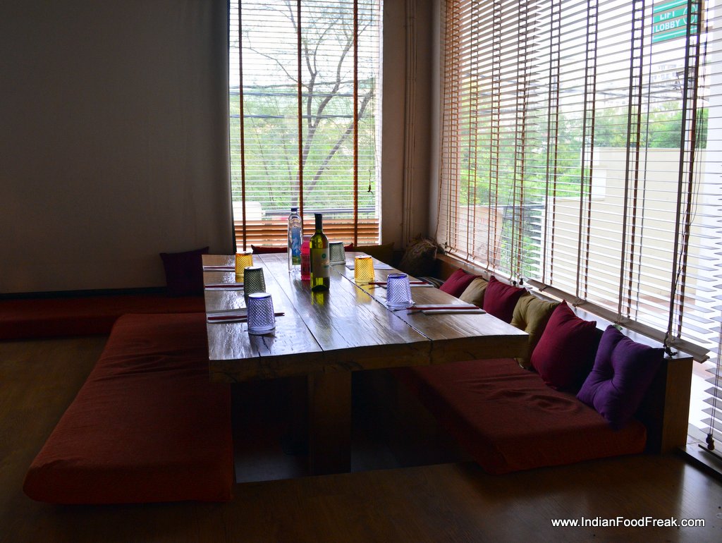 DSC_0007Offering variety of seating options; sofa, chairs and a Japanese style elevated space where legs can rest below the table as the floor is much lower; it is an instant hit with all age groups. In my opinion one may avoid the sofa seating which is not very comfortable due to small legroom. The interiors otherwise were pleasant, the open kitchen did not discomfort diners with its fumes, and the air-conditioning remained effective.