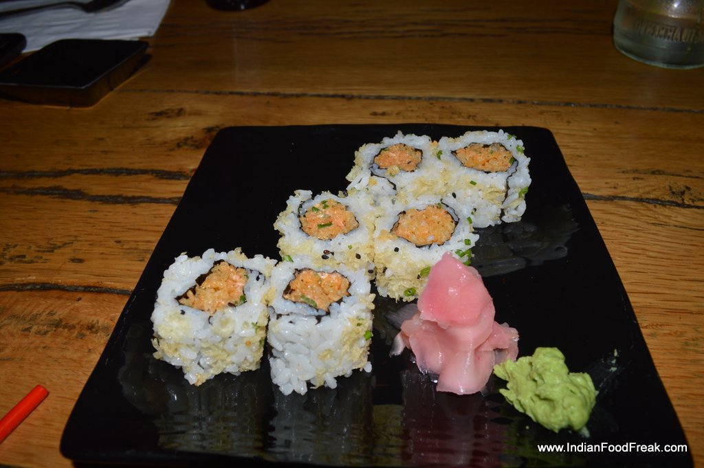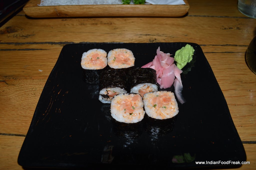 Crunchy SushiGoing back to the main menu, Prawns Tempura (455) though not perfect were much better than most places in Gurgaon. Sushis were not too high on rice and fish was good too. High point was the American crunchy fried sushi (275) which has a crisp tempura batter inside. It was a marriage made in heaven between traditional sushi and crisp batter.
