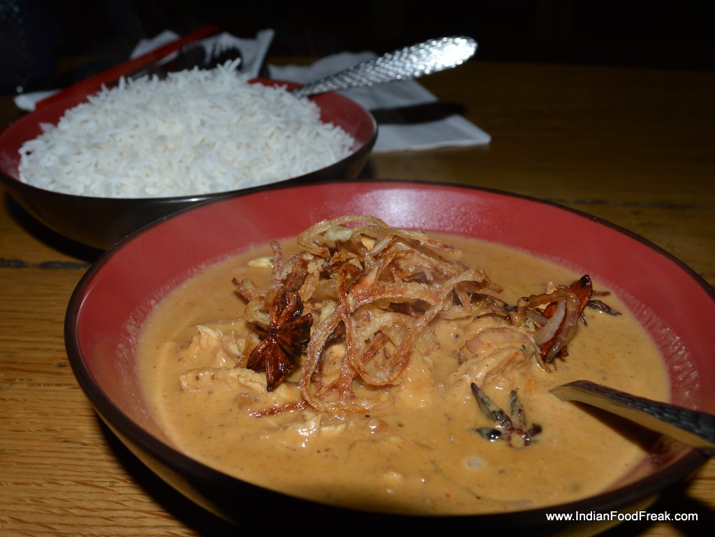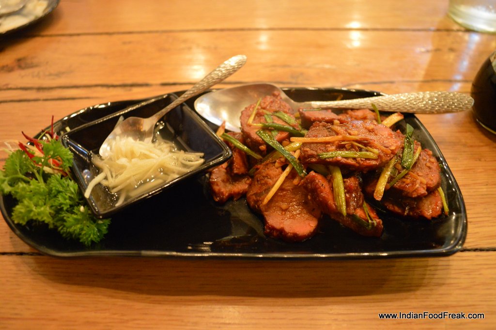 massaman curryThe scallion and ginger pork (375) was another interesting dish, only if the pork was a trifle thin. To end the meal we were strongly recommended Indonesian Muslim (massaman) Chicken Curry (375). Excellent aroma of star anise and cardamom filled the table. The curry was excellent. It would have been a brilliant dish if it used whole or boneless chicken instead of shredded one. However it is a dish with a Thai origin. Not able to understand the Indonesian connect.