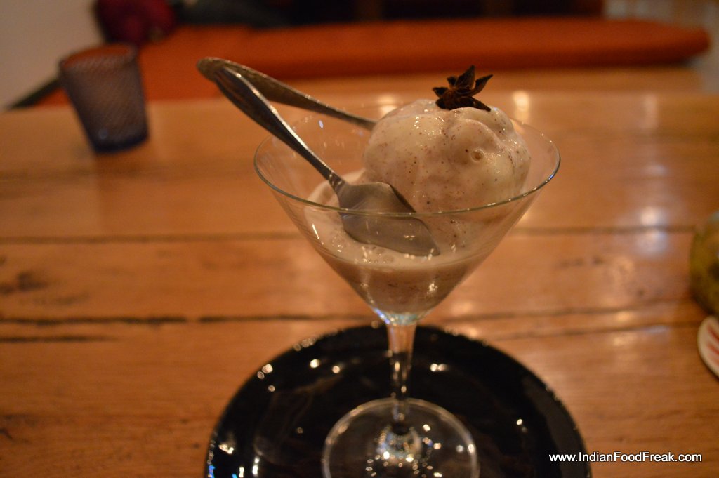 star anise & honey ice creamThe dessert is not to be missed. House made star anise icecream with honey (145) had an excellent texture and just melted leaving a long happy note.