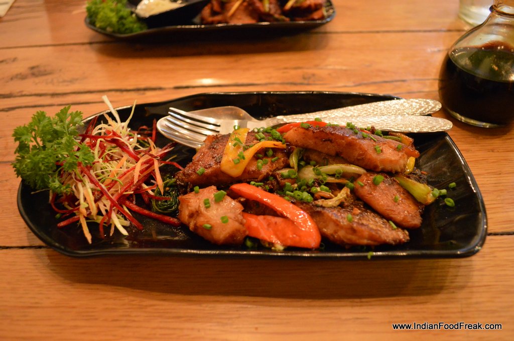 Offering variety of seating options; sofa, chairs and a Japanese style elevated space where legs can rest below the table as the floor is much lower; it is an instant hit with all age groups. In my opinion one may avoid the sofa seating which is not very comfortable due to small legroom. The interiors otherwise were pleasant, the open kitchen did not discomfort diners with its fumes, and the air-conditioning remained effective.