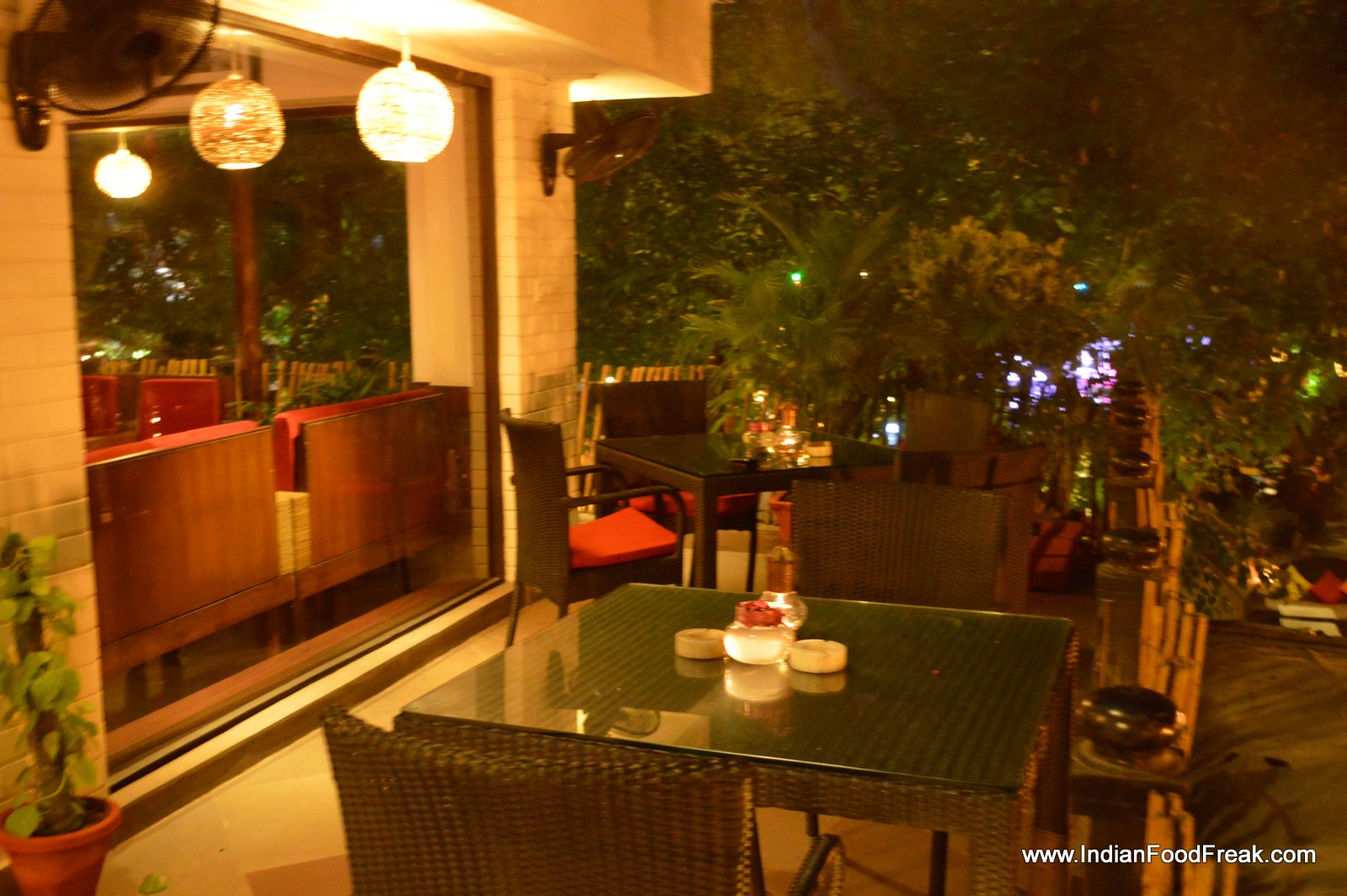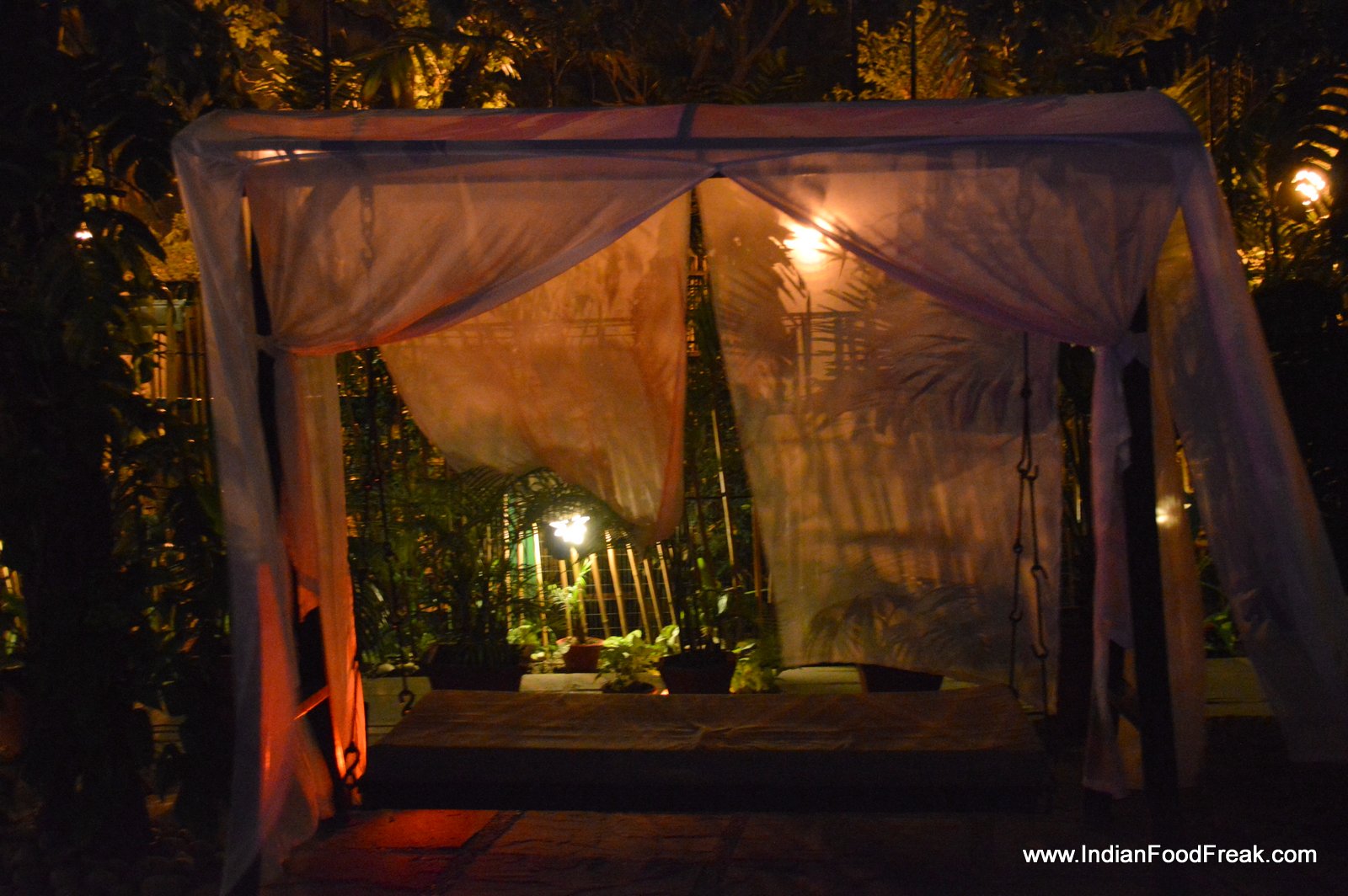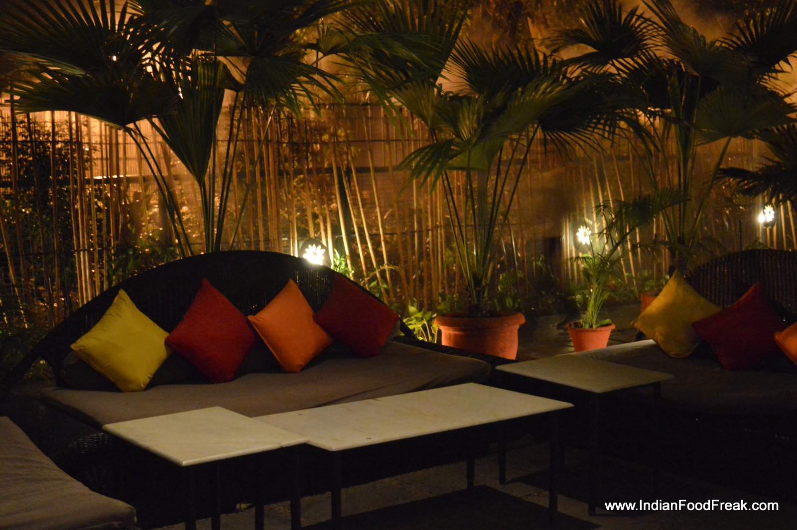 Contrastingly, the lovely gravel laden garden with bamboo lamps hanging haphazardly from the trees, strategically placed seating including private tented cabanas, discreet lighting and live music, made the most of the bucolic setting in the heart of bustling New Delhi city. The balmy weather urged us to opt for a table inside notwithstanding the lovely, inviting garden.