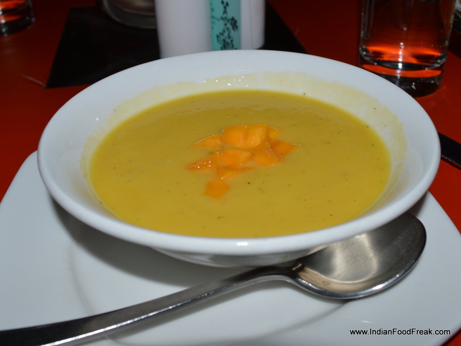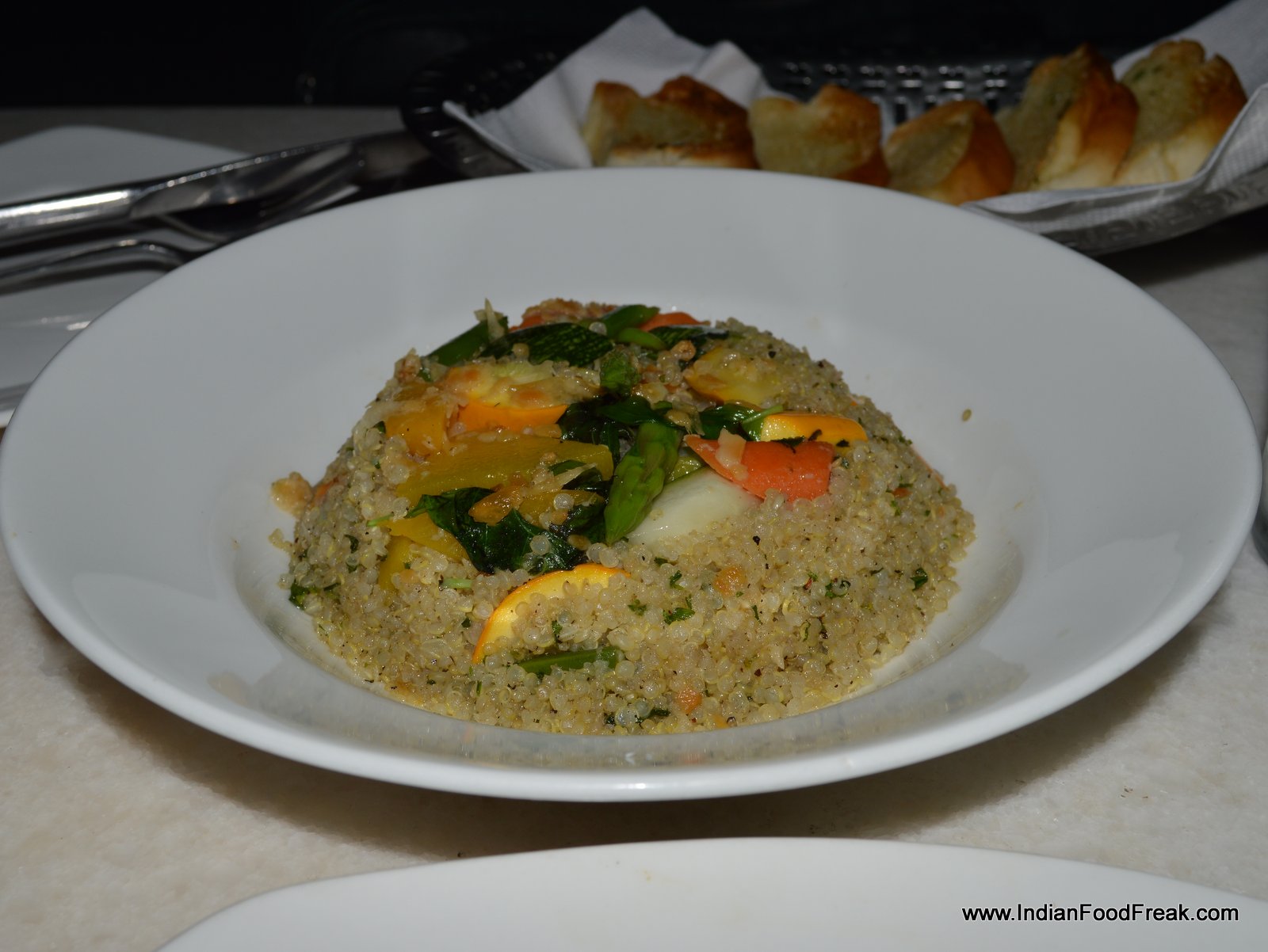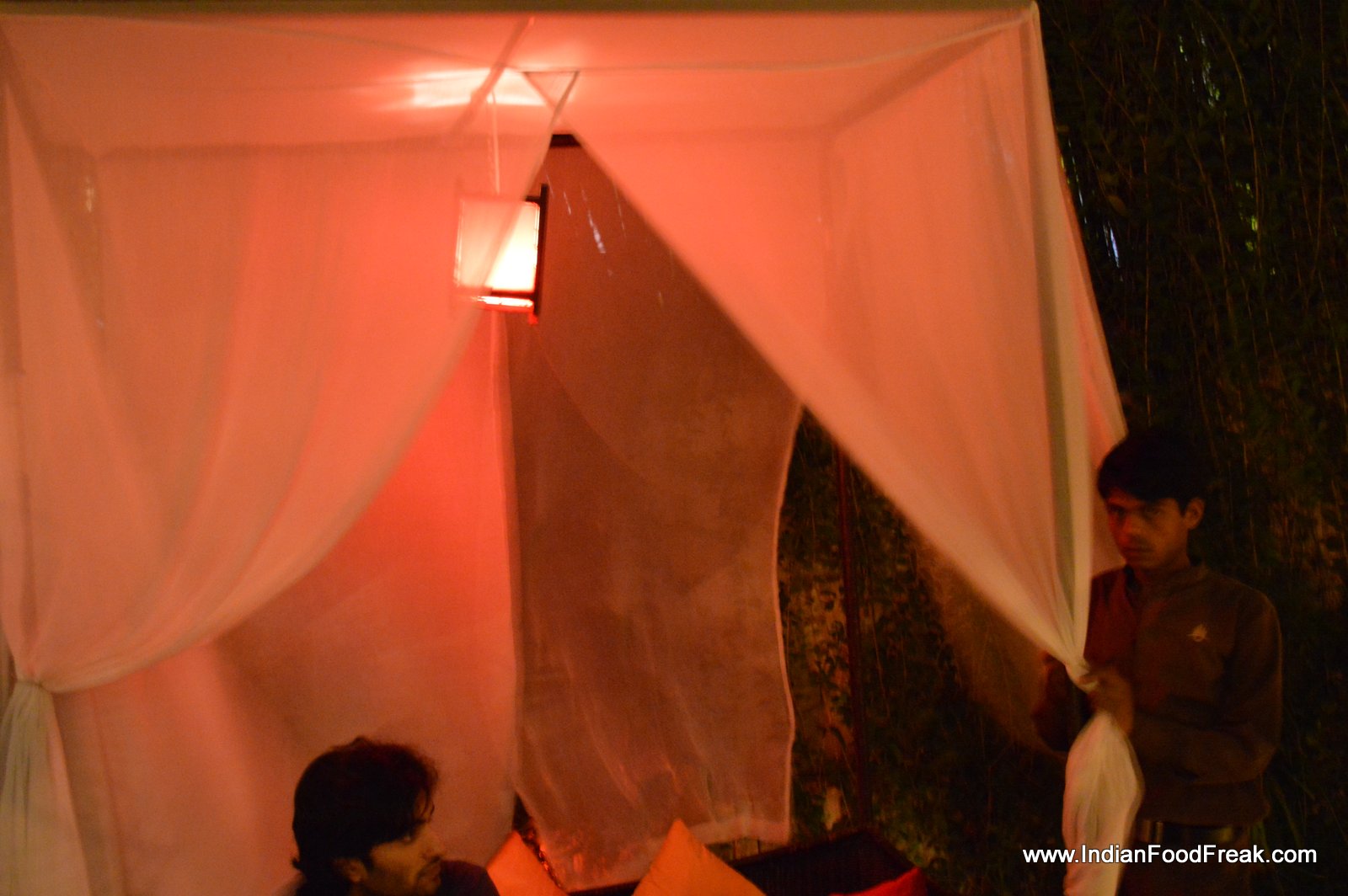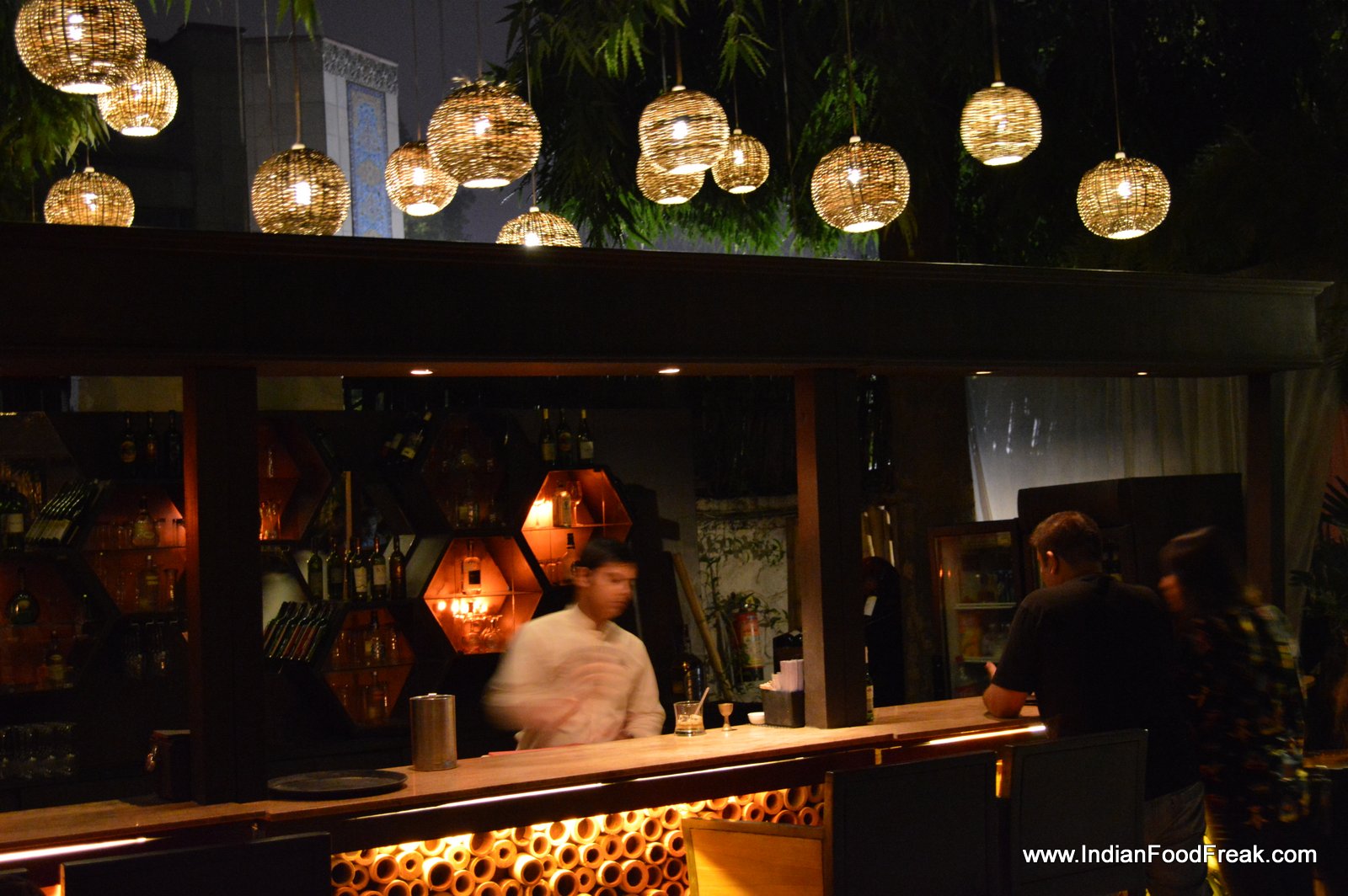 Contrastingly, the lovely gravel laden garden with bamboo lamps hanging haphazardly from the trees, strategically placed seating including private tented cabanas, discreet lighting and live music, made the most of the bucolic setting in the heart of bustling New Delhi city. The balmy weather urged us to opt for a table inside notwithstanding the lovely, inviting garden.